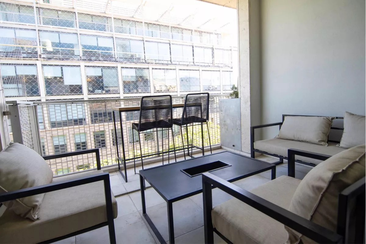 El departamento se compone de un amplio estar con acceso a un balcón terraza con muebles de exterior.