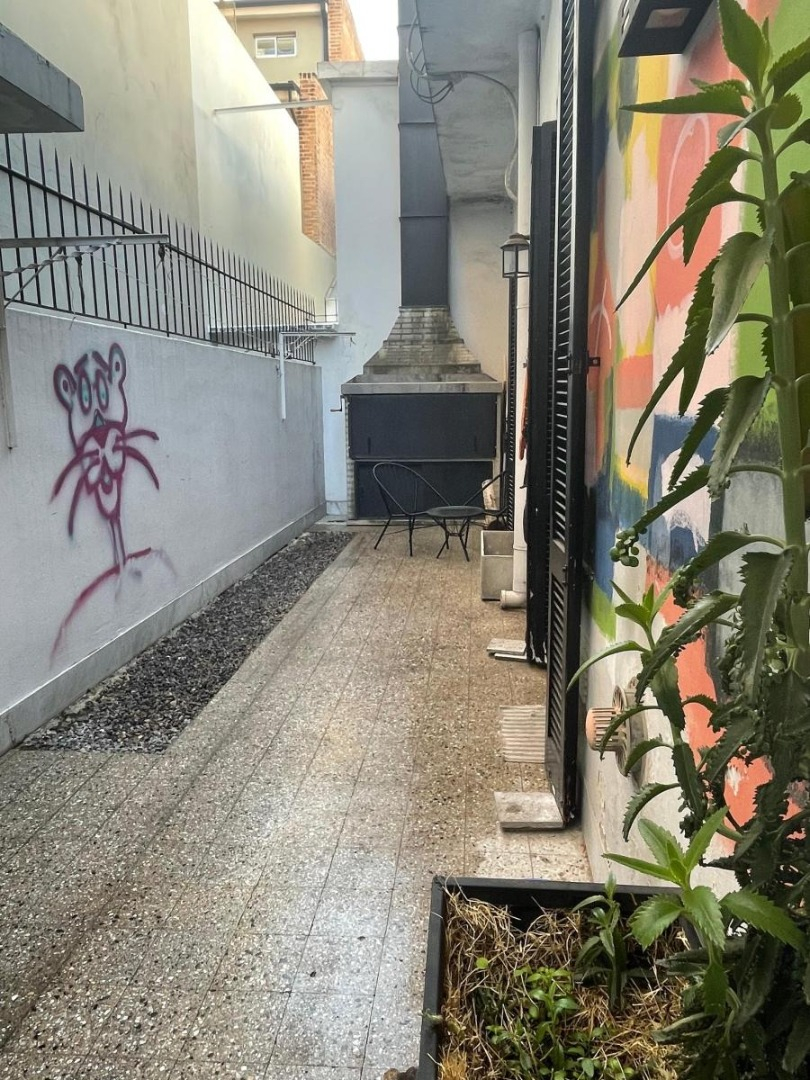 Posee 2 ambientes, tipo loft, cocina y baño completo. Patio y terraza. Muy cómodo, luminoso y silencioso.