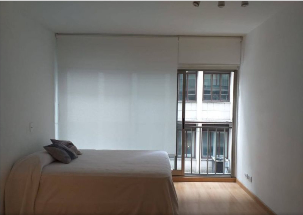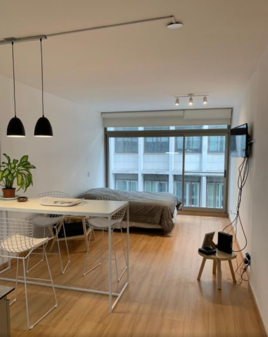 Zona de escritorio y dormitorio al lado del ventanal, con muy buena luz natural.