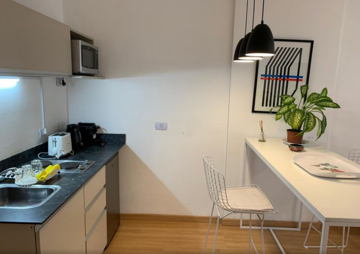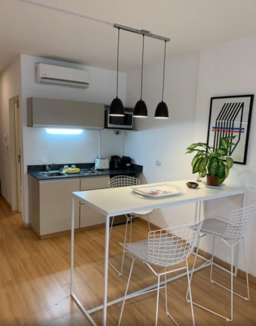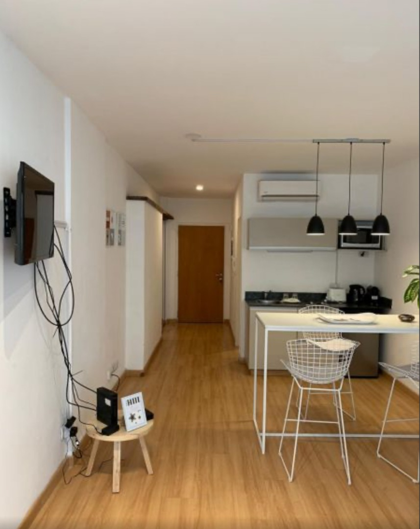 Cuenta con área de living- comedor. Cocina integrada con barra y banquetas.