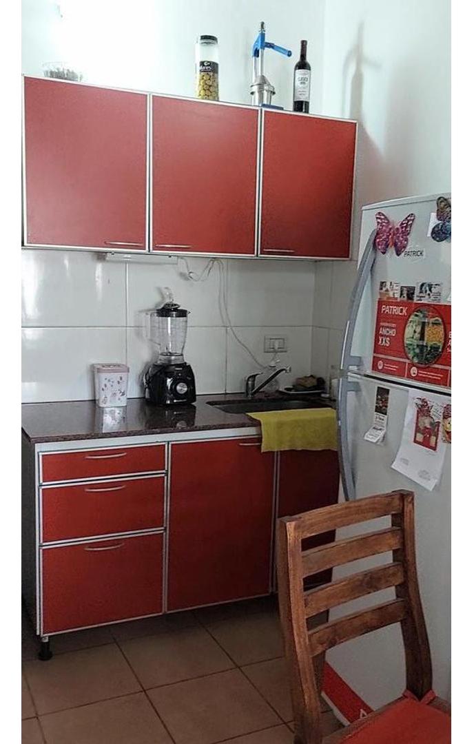 Interior; Al ingresar por la puerta principal se encuentra un ambiente amplio con moblaje de cocina ,al fondo bajo mesada y alacena incluidos. Tiene un espacio ideal para uso de living comedor y para armar un rincón apto para trabajo/ estudio, tal como se observa en las fotos de la publicación.