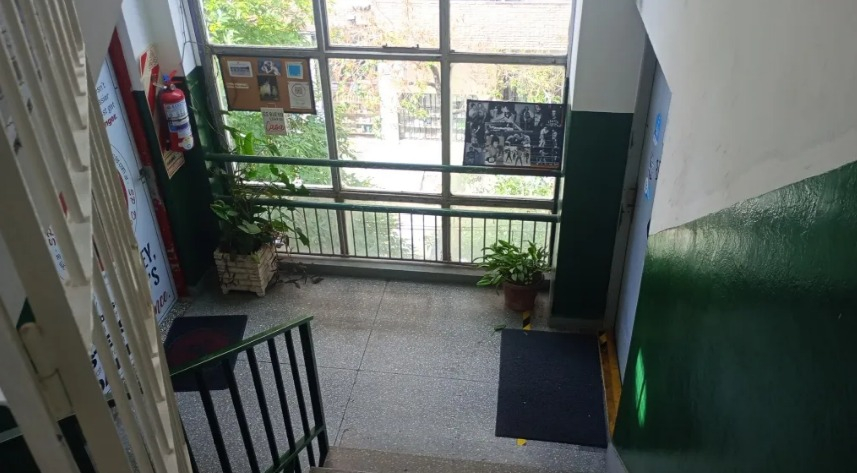 En los pisos de abajo, dentro del mismo edificio hay una escuela de danza y otra de boxeo.