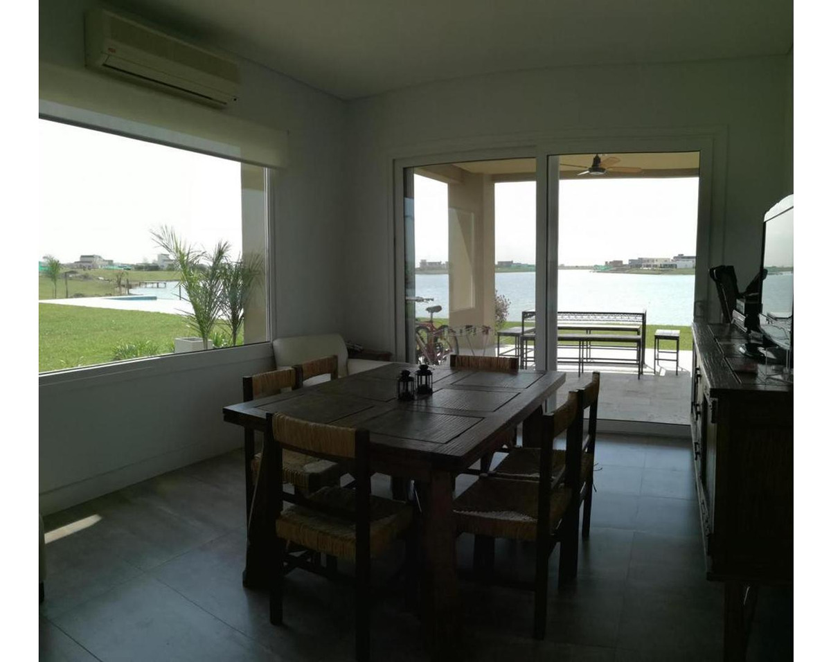 La casa cuenta con aire acondicionado en cada dormitorio. 2 televisores Led por cable y WIFI en toda la casa, además tiene piscina con borde infinito y playa húmeda. Fogón con asador y parrilla. Parrilla portable y Muelle para canobote.