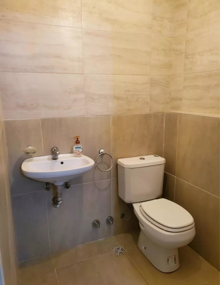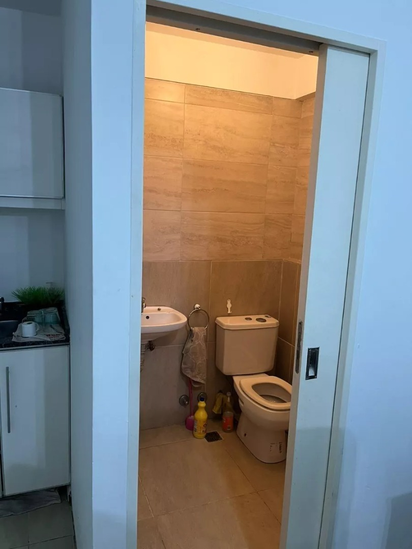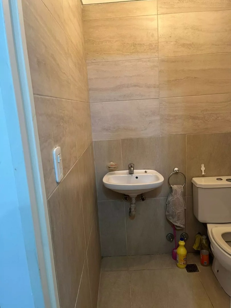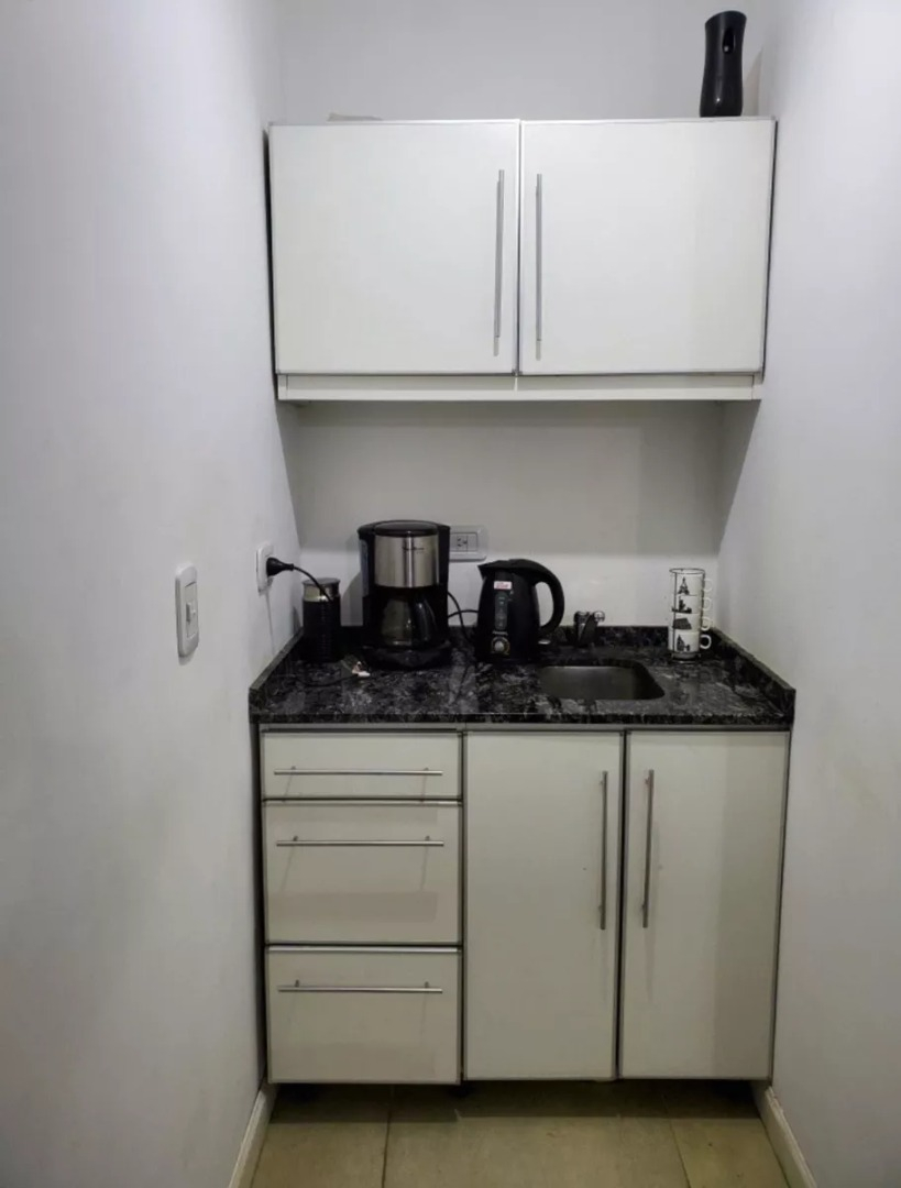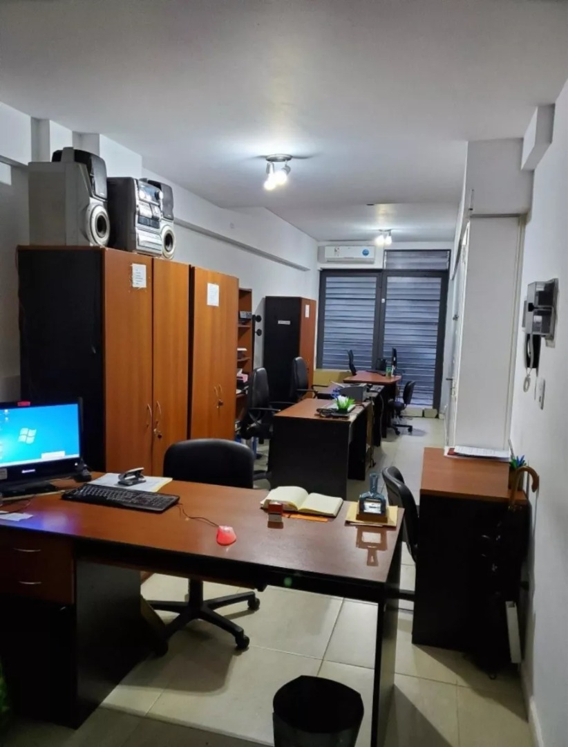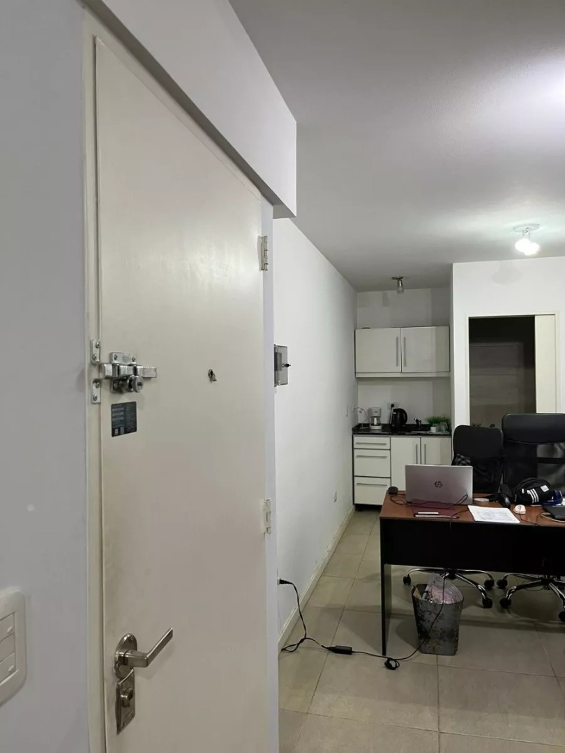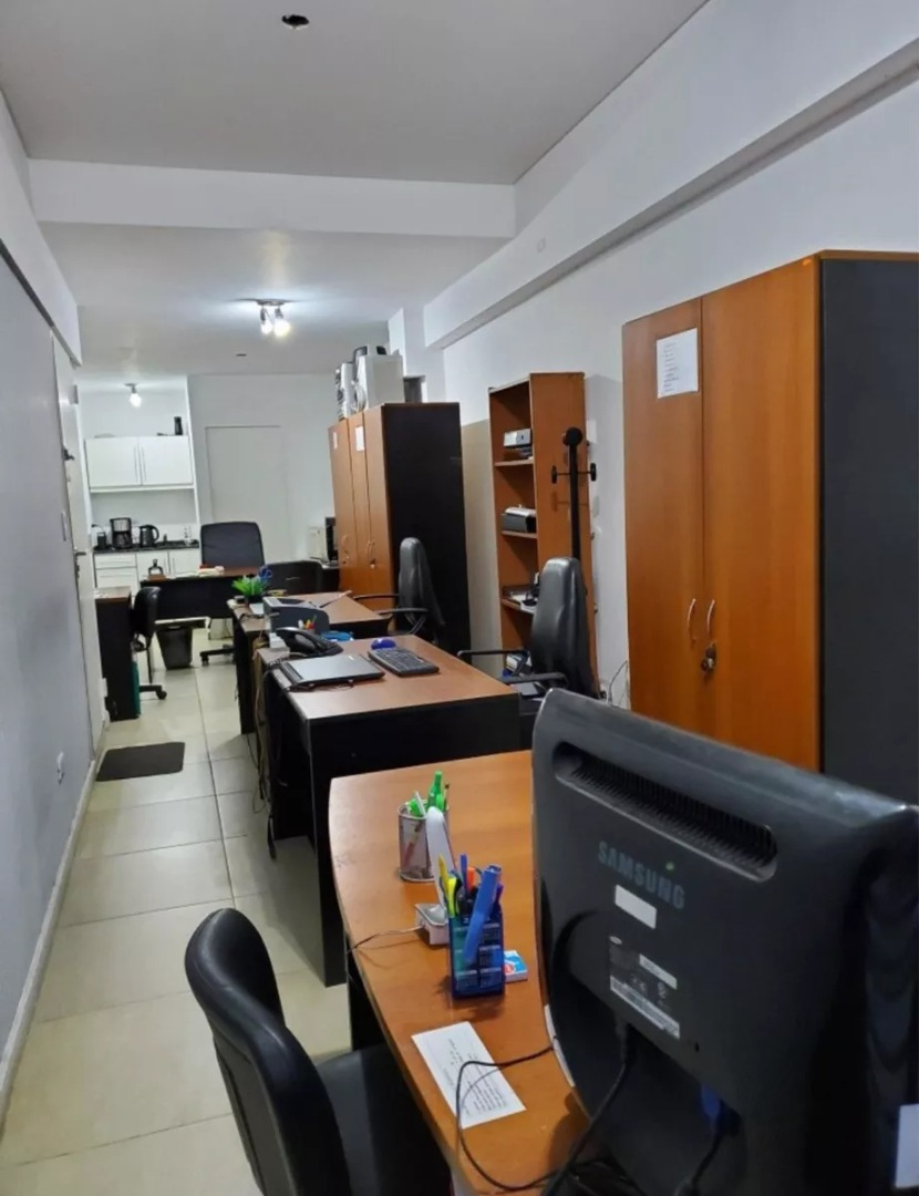 La propiedad cuenta con un ventanal con puerta hacia la calle de vidrio polarizado con reja y cochera cubierta. Se ingresa a la oficina a través de la entrada común del edificio. Sobre el ventanal se encuentra el aire acondicionado frío/calor. Hacia el fondo de la oficina se encuentra el área de la cocina con alacena, bajo mesada con mármol y una pileta de una bacha y mono comandos. A la derecha hay un espacioso baño con pileta de manos e inodoro. Tiene portero eléctrico.