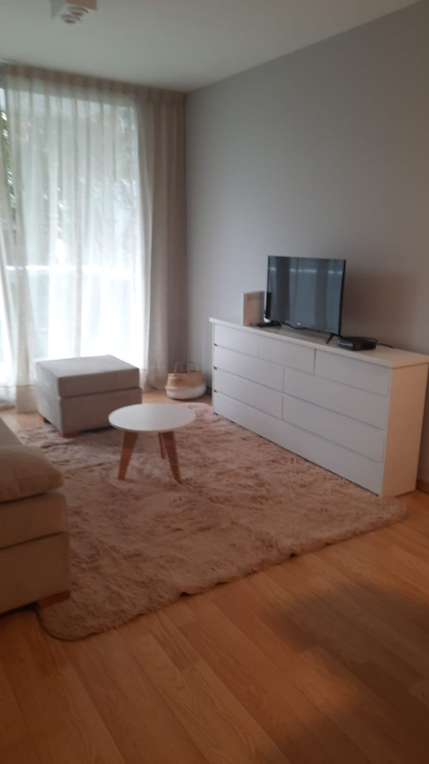 El departamento cuenta con una amplia habitación con cama matrimonial y baño en Suite, amplio living comedor, toilette de recepción, cocina completa y balcón a la calle. Muy luminoso en todos sus ambientes.