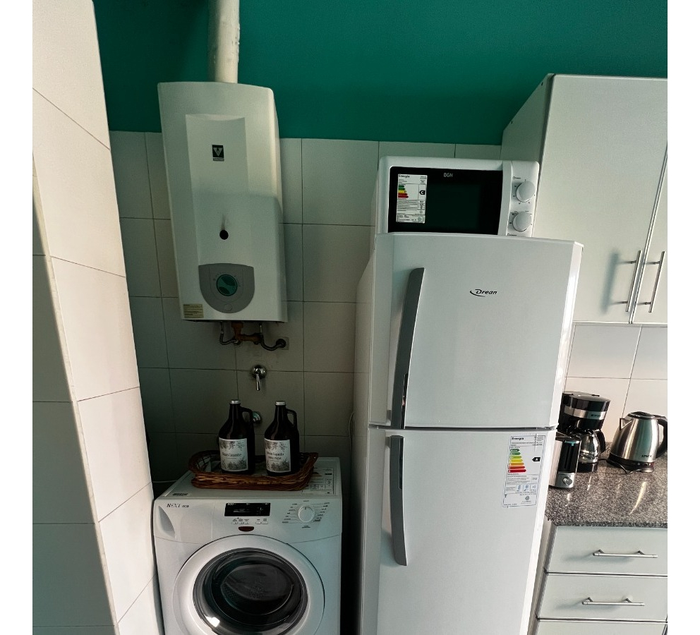 El ambiente principal cuenta con sala de estar con sofá y mesa baja, mesa y sillas de comedor, TV, aire acondicionado frío/calor. La cocina es independiente y esta totalmente equipada con heladera con freezer, horno a gas, microondas, pequeños electrodomésticos y vajilla completa. El dormitorio cuenta con cama doble, placard, aire acondicionado frío/calor, ropa de cama. Baño completo con bañera.