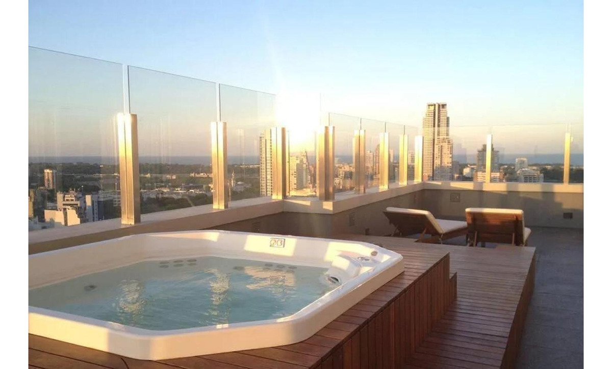 Cuenta con todos los amenities de un edificio de lujo, desde sauna, piscina, jacuzzi, gimnasio, bicicletas de cortesía, cochera fija y de cortesía, SUM, "sky view" en piso 27 con vista panorámica a toda la ciudad y seguridad las 24hs, entre otros servicios como patio de juegos para niños.