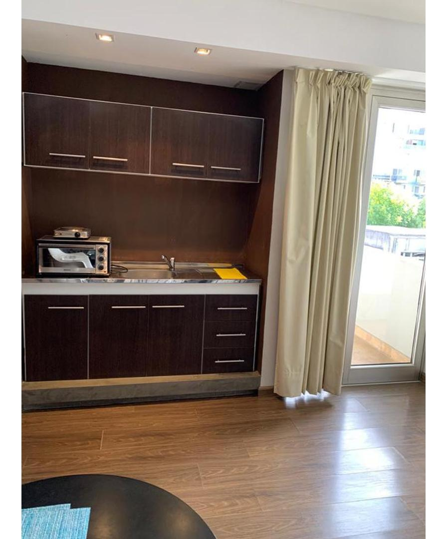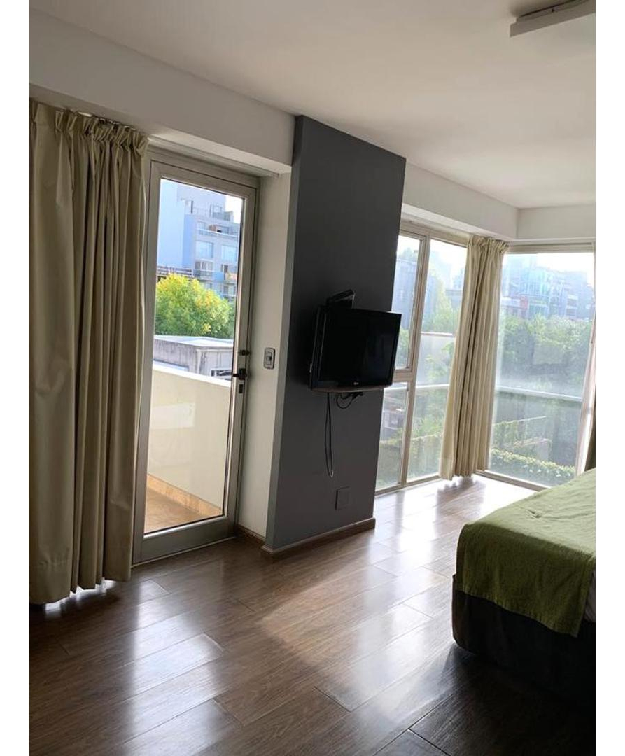 Cuenta con 30 m2 cubiertos, compuesto por cocina, comedor y living, amoblado con todo lo necesario para su uso (tv, frigobar, aire acondicionado, horno eléctrico, pava eléctrica, heladera con freezer). Amplios ventanales que permiten el ingreso de luz natural y el acceso al balcón. Cuenta con un dormitorio totalmente amoblado y baño completo.