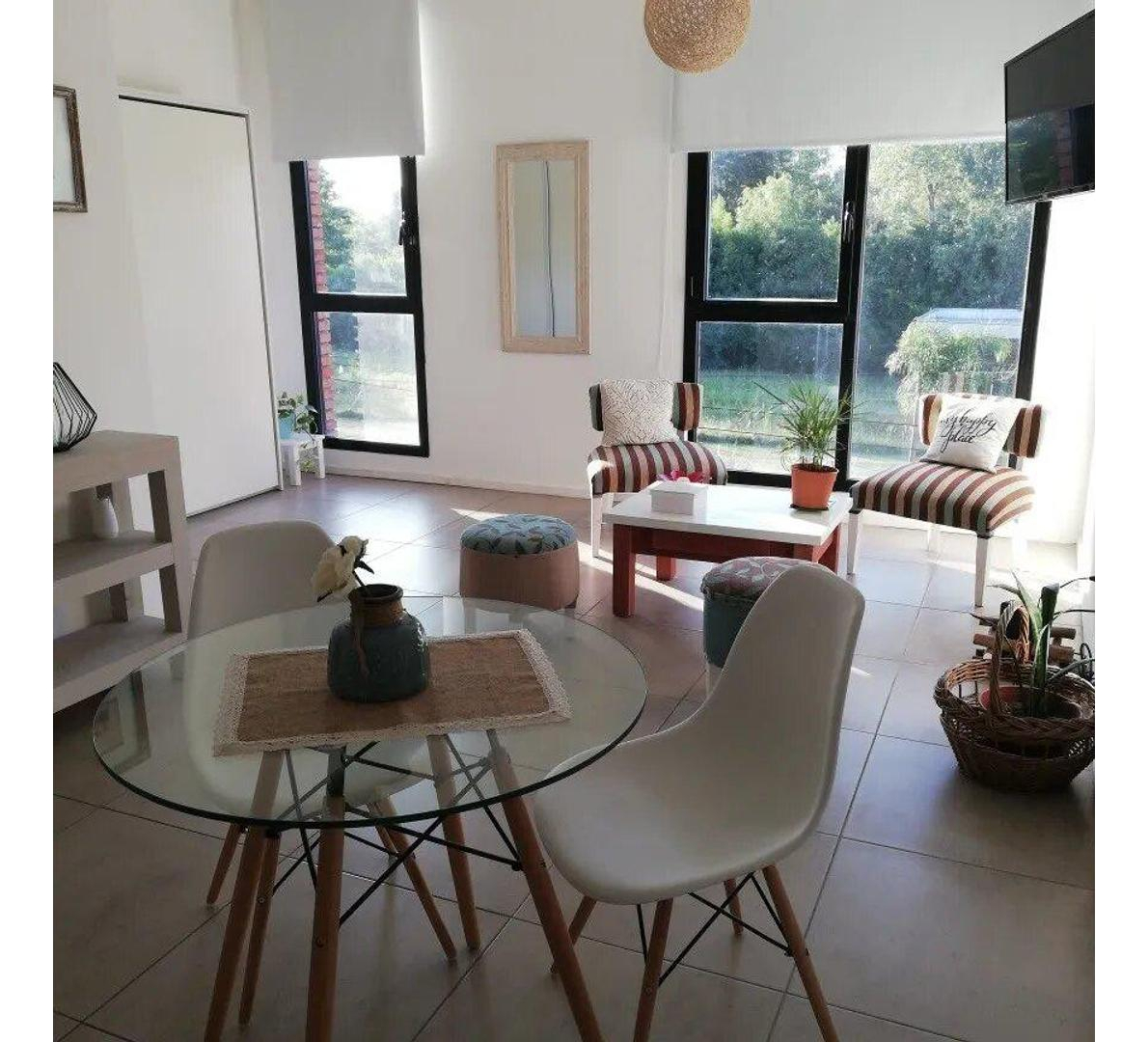 Tiene A/A frío calor, heladera bajo mesada, cama rebatible de dos plazas, cocina eléctrica, Hornito y Pava eléctrica.