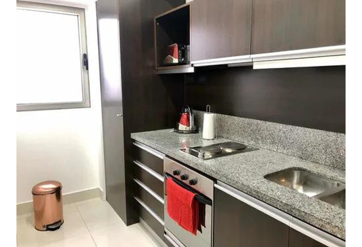 Por su derecha podrá acceder cocina las cuales se encuentran amobladas y equipadas para su uso. Además cuenta con un dormitorio suite compuesta con una cama de dos plazas y una amplia ventana corrediza y se encontrará con un baño.