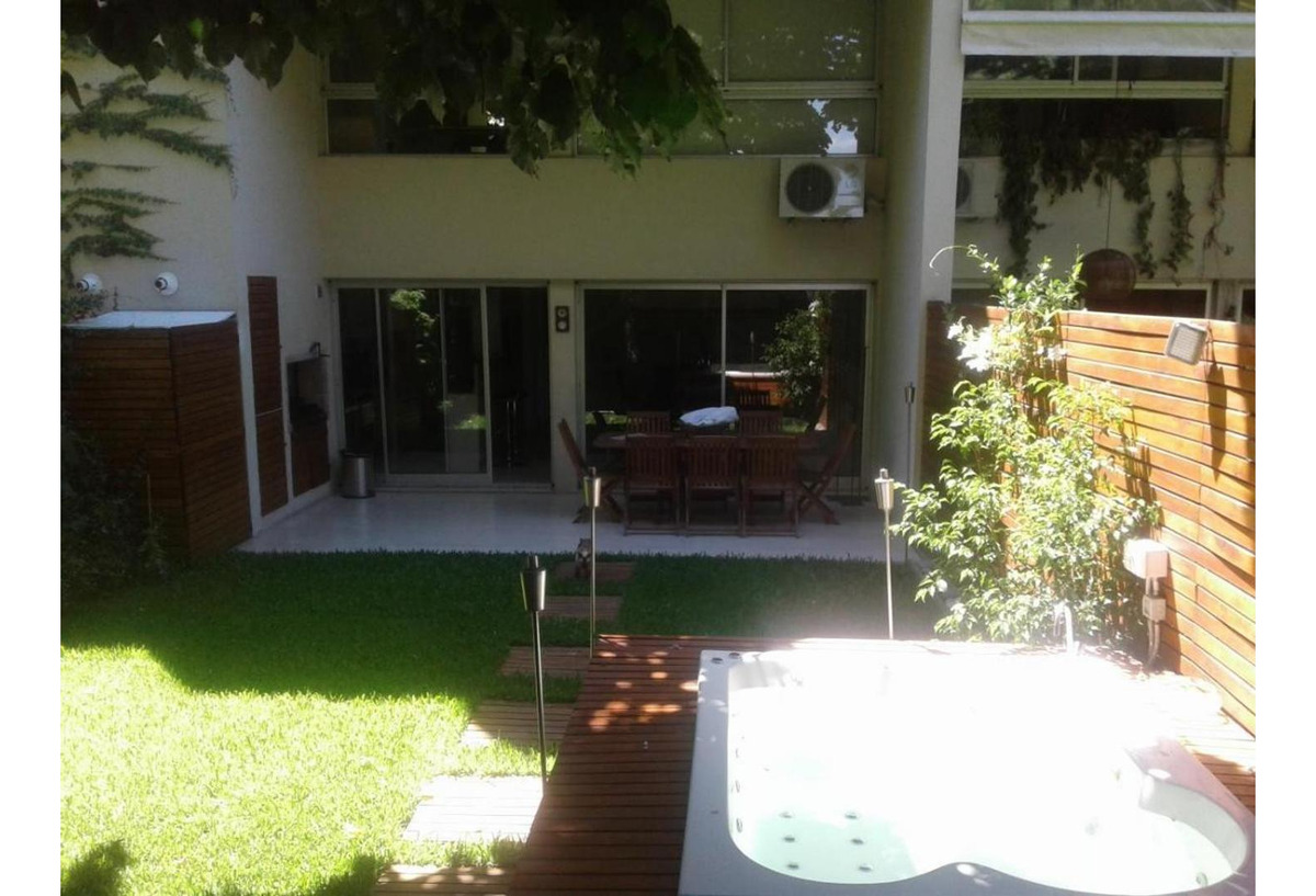 El departamento cuenta con jardín zen propio con dos tilos y jacuzzi, en Complejo con vigilancia 24hs, jardines comunes, piscina, gimnasio, guardería de niños, SUM, laundry. Además de una cochera cubierta