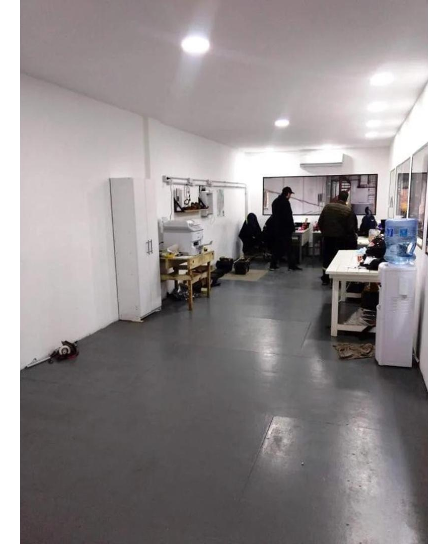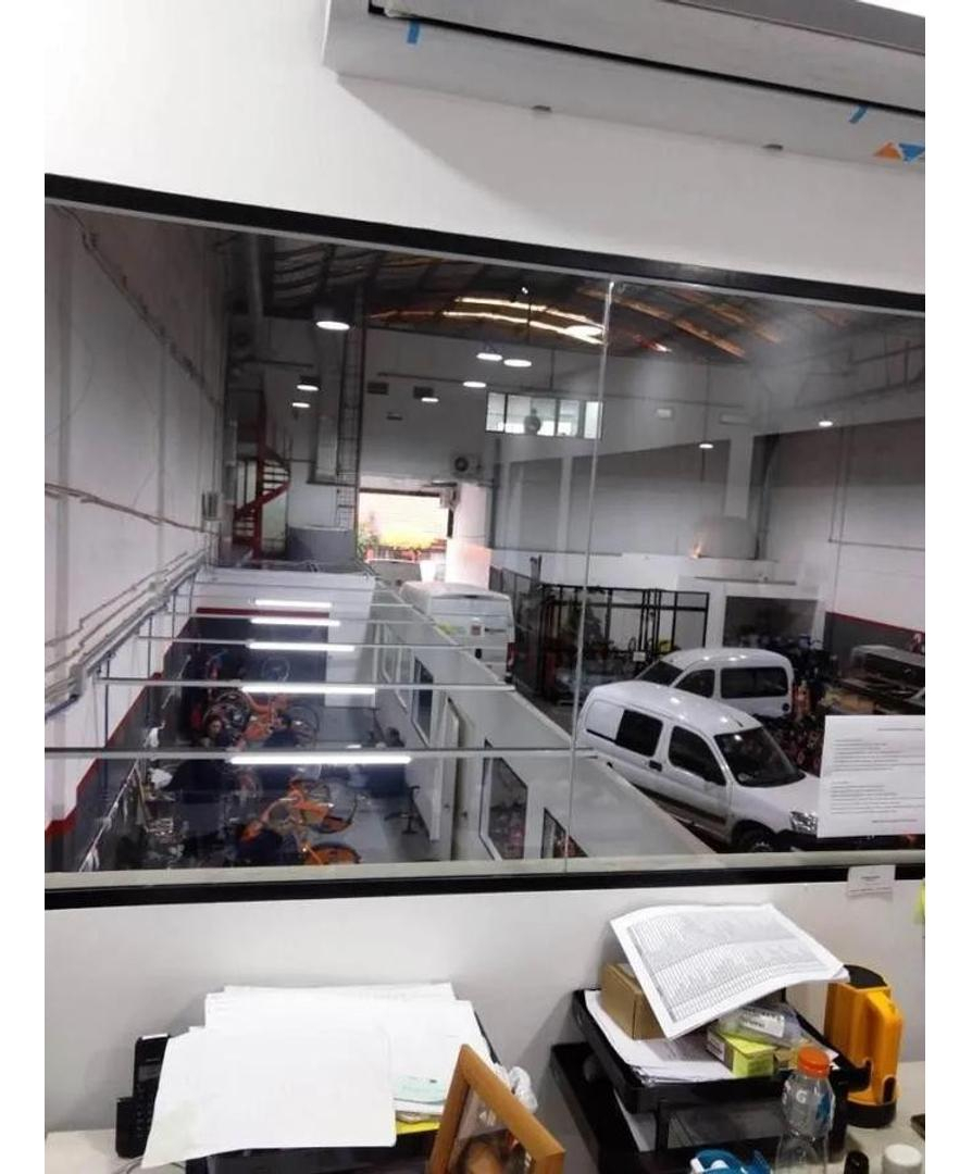 Galpón: Ocupando toda la superficie restante del lote (980 m2), techo parabólico, sin columnas, altura máxima 10,20 m, altura mínima libre 5,00 m, portón para camiones de 7,00 m de ancho (actualmente 4,00 m) y 5,00 m de altura, sector de carga y descarga independiente, piso reforzado de H A para grandes cargas, baños, vestuarios, duchas para personal de planta de ambos sexo, luz y ventilación natural. Deposito independiente para materiales sensibles de 110 m2, taller de 80 m2, dos oficinas técnicas, comedor para personal en entrepiso de 22 m2, sistema contra incendios con tanque elevado de 24.500 l, 12.000 l de reserva exclusiva, tanque de bombeo de 6.000 l con 2 electrobombas, boca de impulsión simple, 4 llaves de incendio con mangas de 20 m y lanzas y cortina de agua de 9 rociadores.