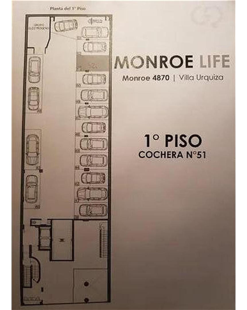 Las cocheras están ubicadas en el primer piso, se accede por medio de un ascensor (Montacarga con grupo a gas en caso de que se corte la electricidad), con gran espacio de maniobrabilidad. Las personas podrán acceder por medio de un ascensor.