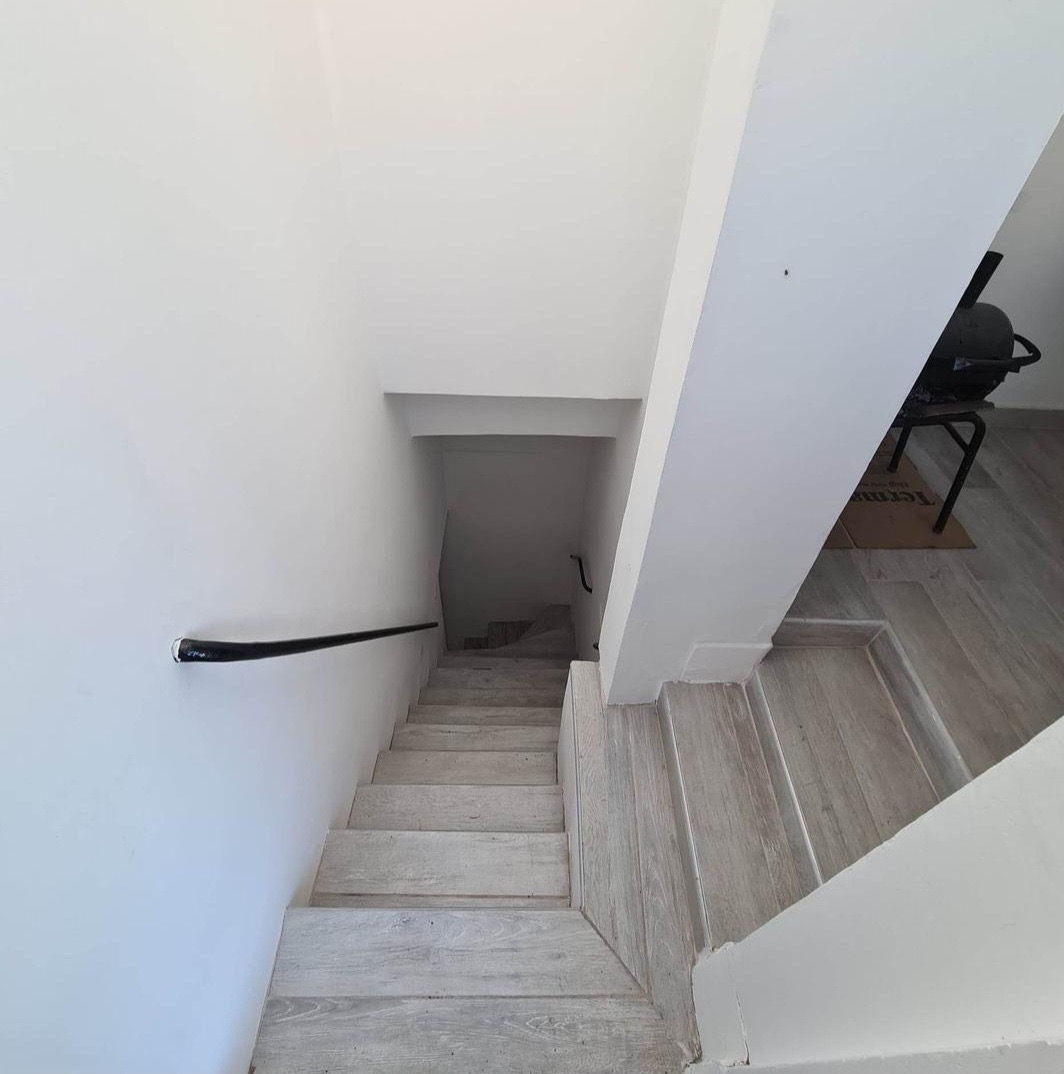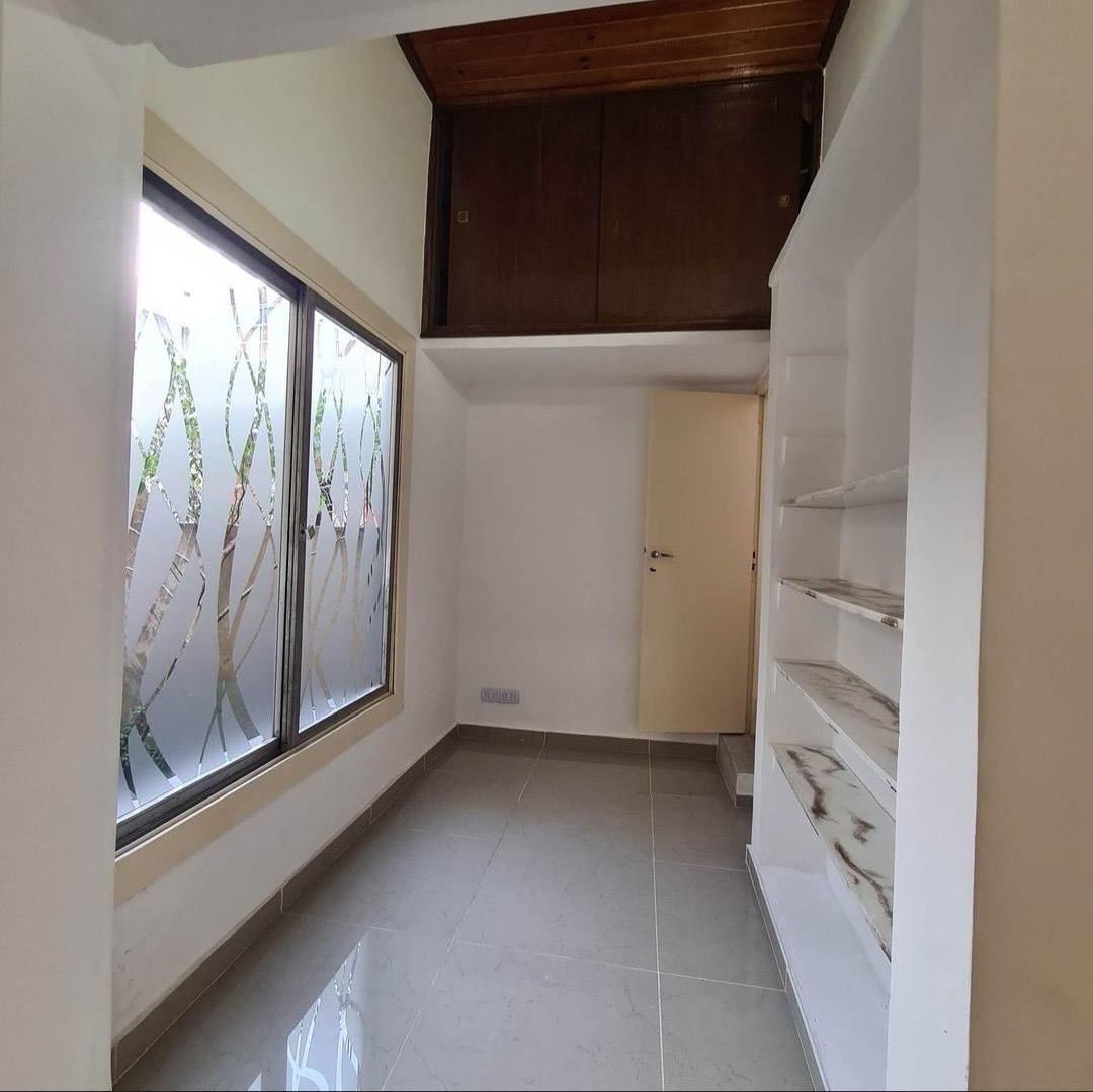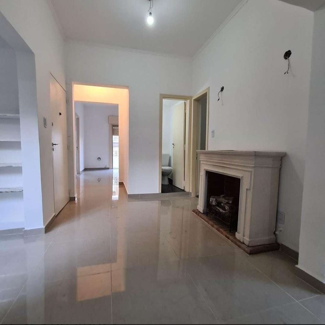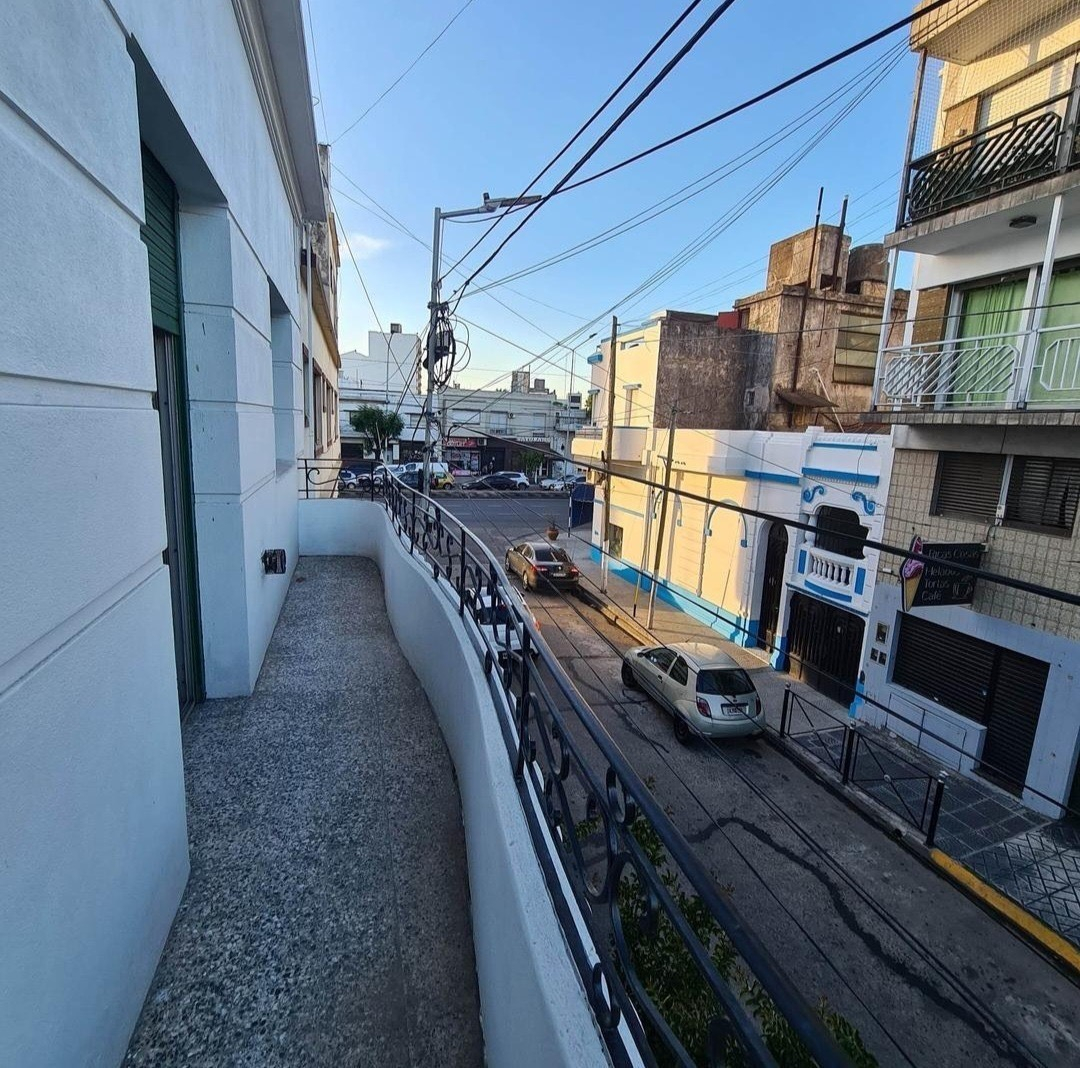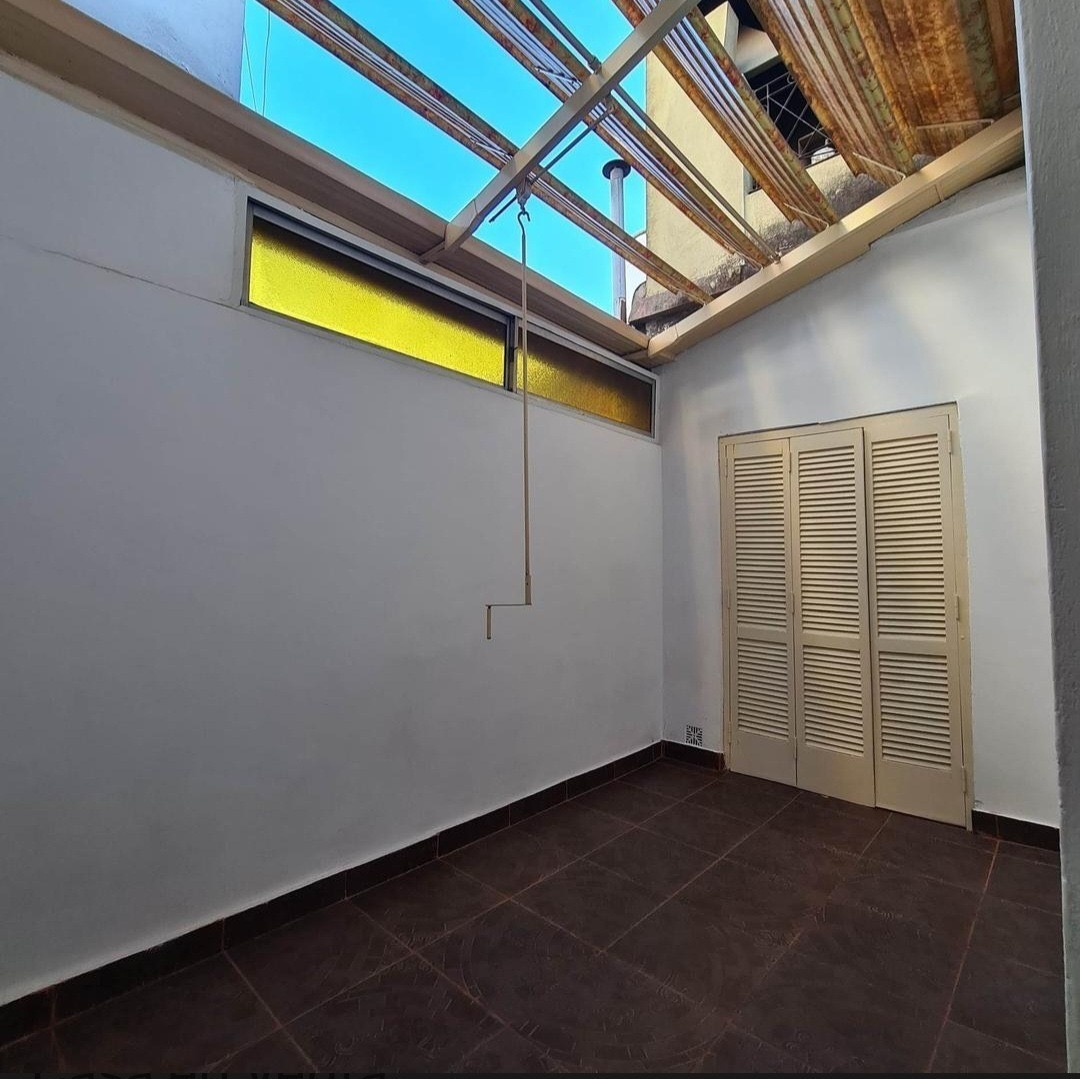Al ingresar al departamento por la escalera tenemos living espacioso muy luminoso, todo pintado en excelentes condiciones, con estufa, piso de porcelanato, luego tenemos el toilette en entrada, el living conecta con un patio techado con vidrio y puerta, muy luminoso y techos altos, todo el departamento se recicló a nuevo, todo pintado blanco.