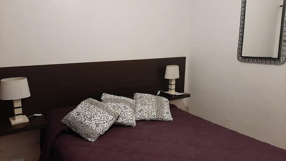 El dormitorio cuenta con cama de dos plazas, mesas de luz, veladores y TV. Aire acondicionado en el dormitorio.