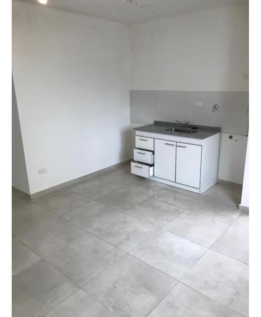 La planta cuenta con 1 dormitorio, con ventanal hacia el pasillo que conecta con la unidad, la cocina con conexión a gas esta integrada al espacio del living-comedor.