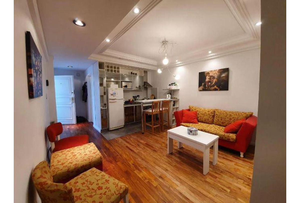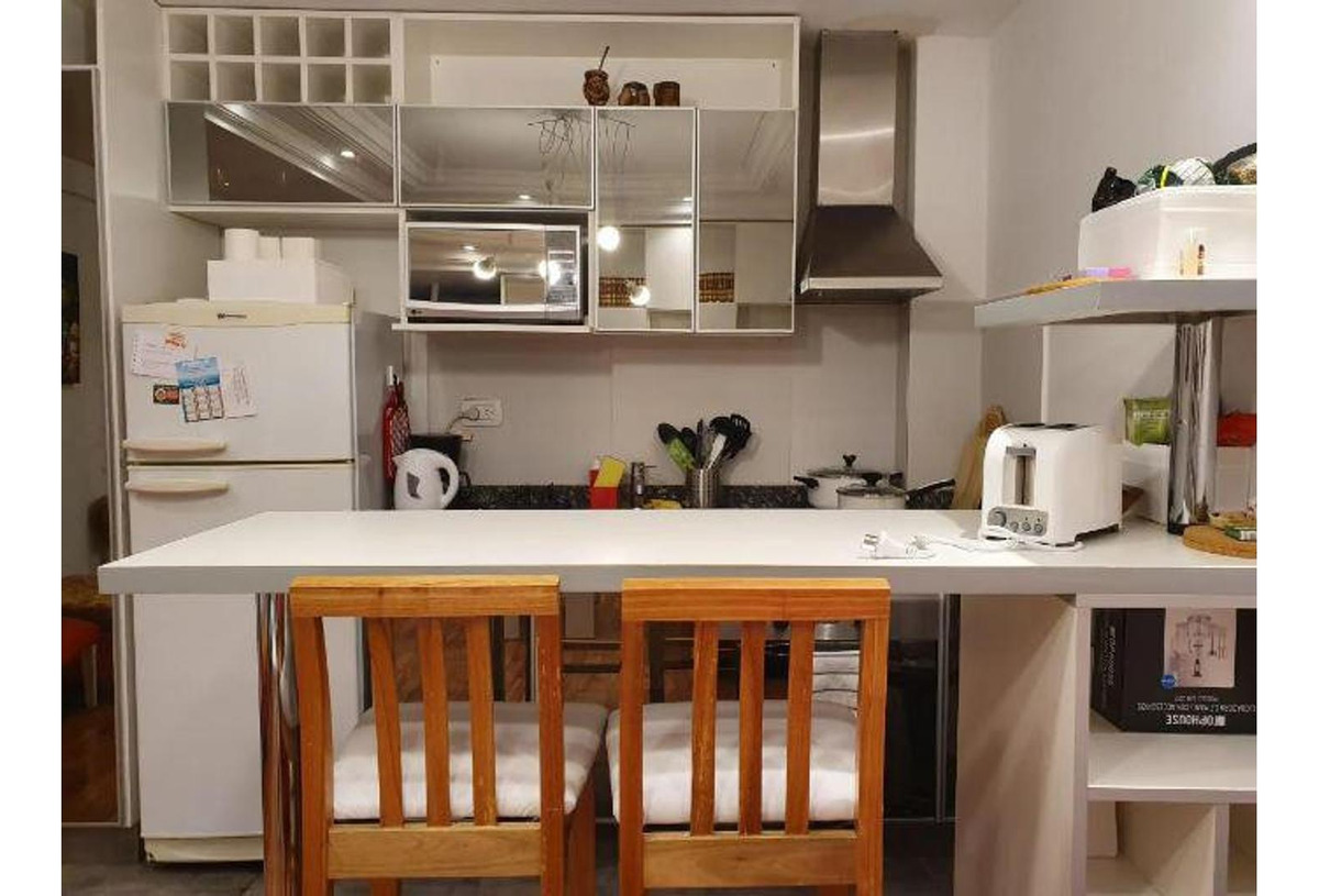 El departamento cuenta con cocina totalmente equipada, living comedor, baño completo y una cama matrimonial semi separada del living. Totalmente amoblado para que tu estadía sea placentera.