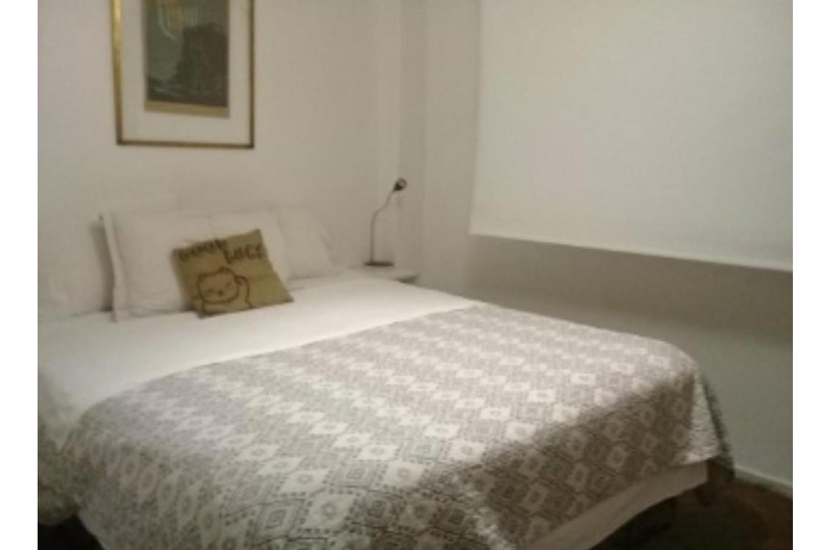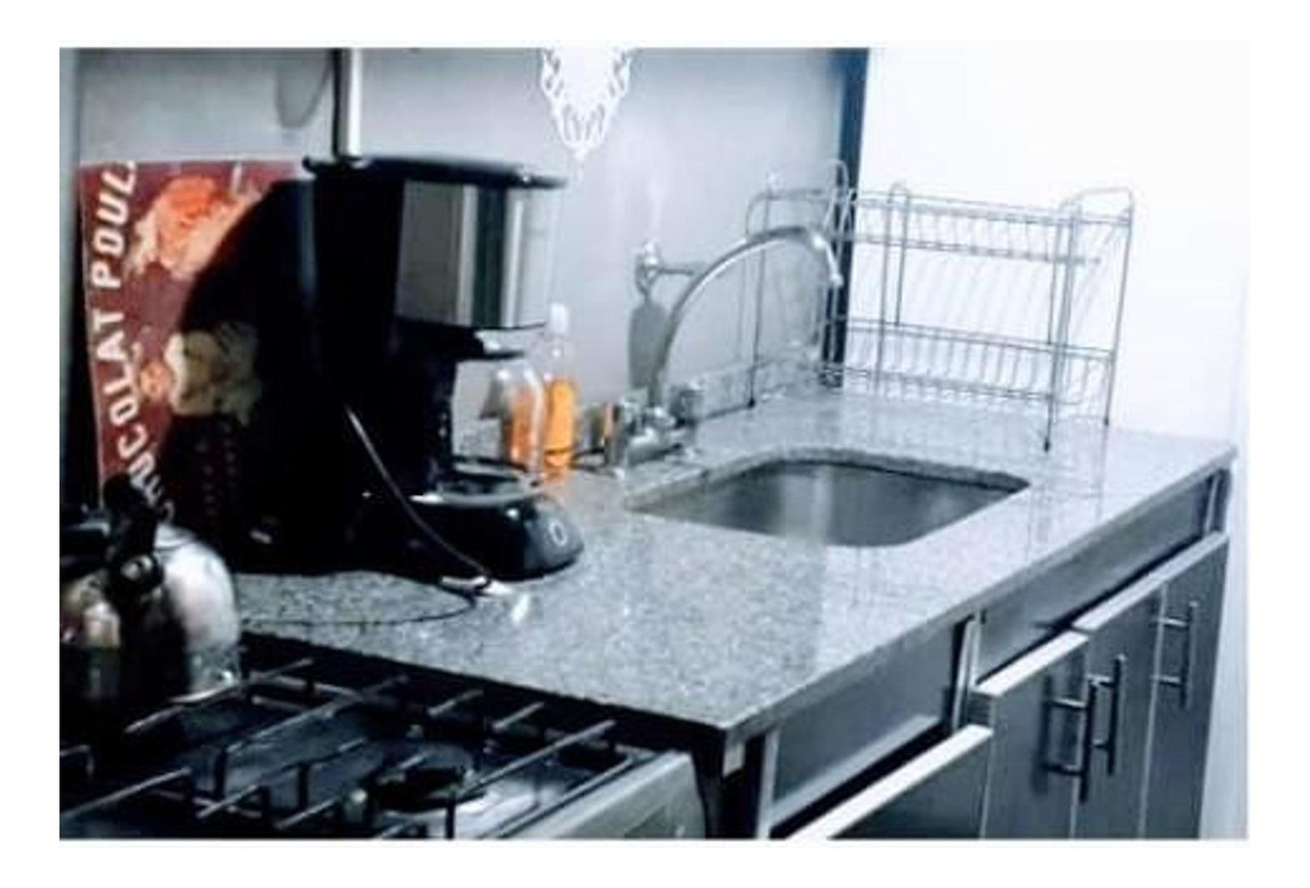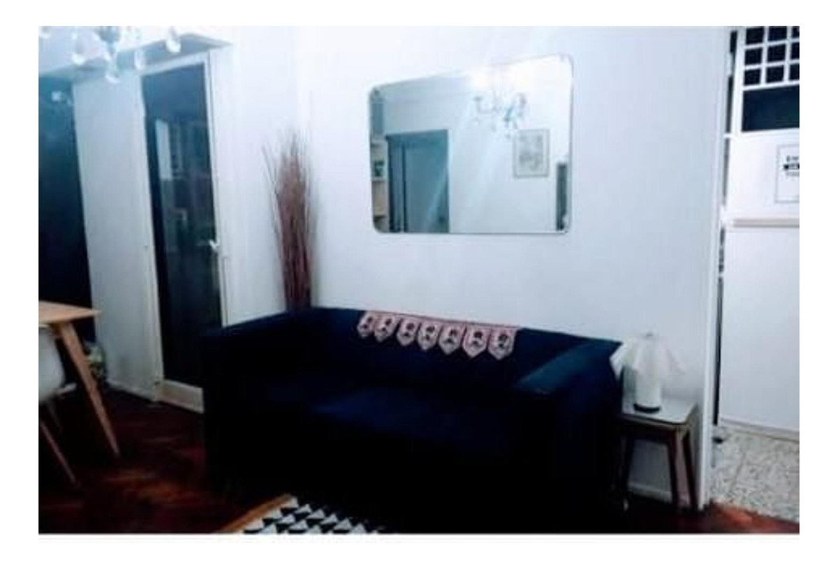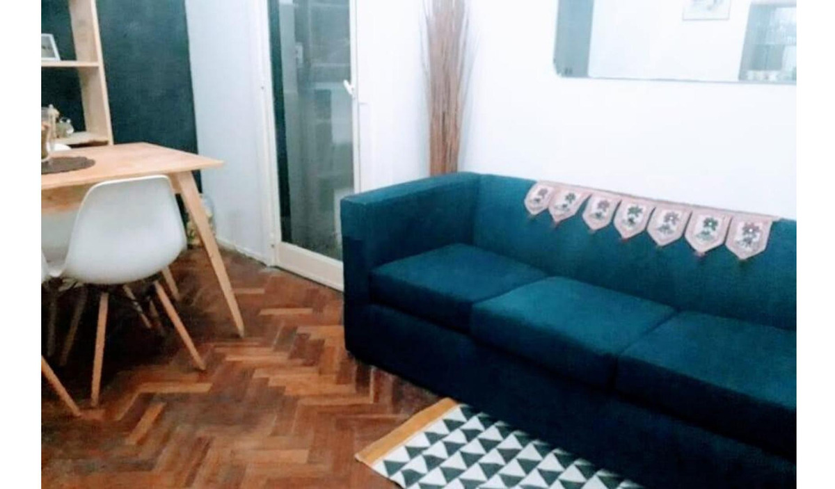 El departamento luminoso en living cuenta con un sofá de tres cuerpos, una mesa con sillas, una puerta a la que se accede a un balcón/lavadero el cual posee lavarropas, la cocina es completa con horno a gas, heladera y cafetera, el dormitorio tiene una cama matrimonial con cortinas blackout y el baño esta completo con toilette, bidet y bañera.