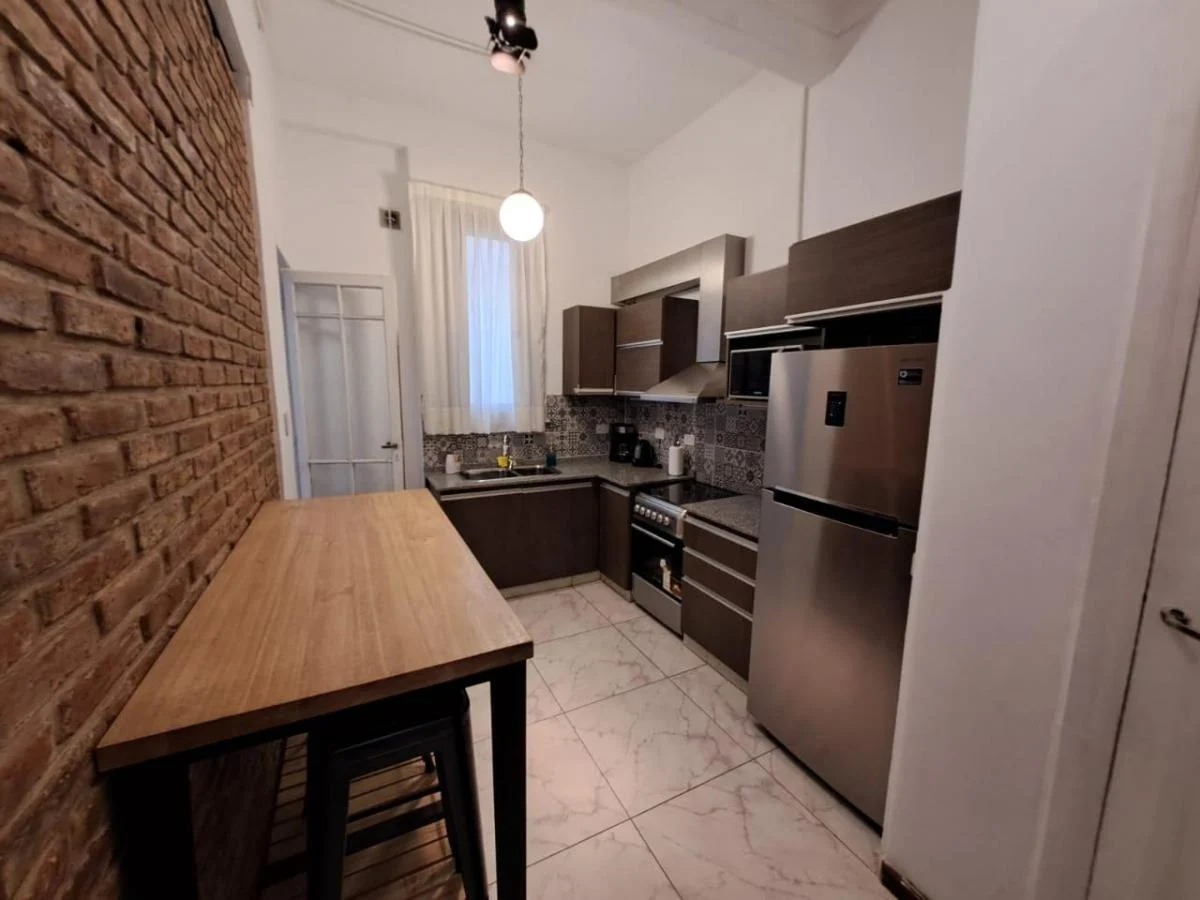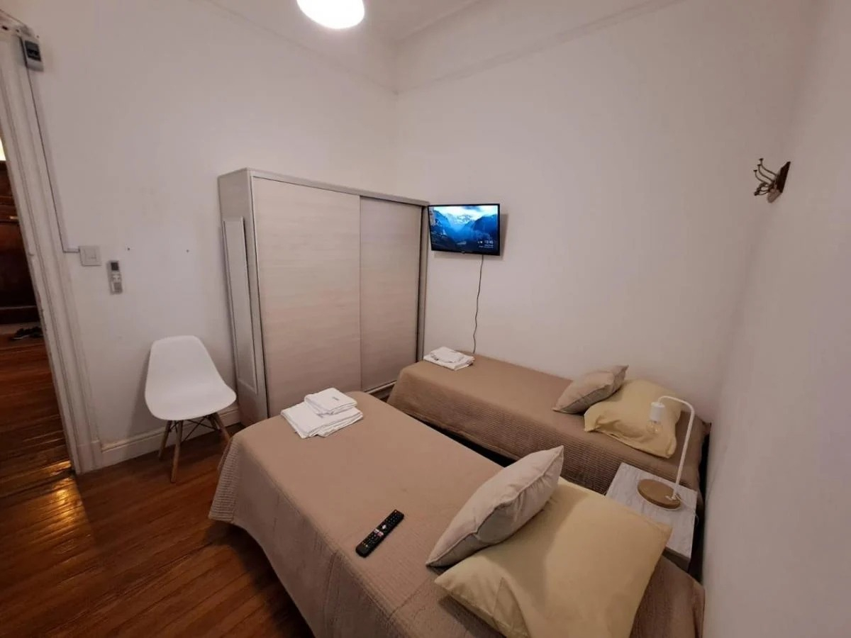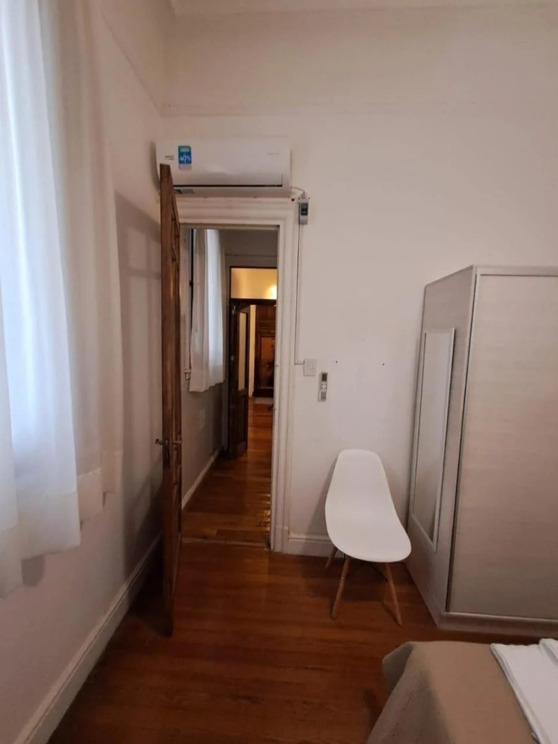 El Edificio es antiguo cuenta con portería en el horario de 9 a 19 hs. La propiedad se encuentra en un 2do piso por ascensor. Apto para 6 personas máximo. Al acceder al inmueble nos encontramos con un living, el cual posee un sillón cama de 2 plazas, una bibloteca y una tv 55". La habitación principal cuenta con un espacioso ropero, cama queen y aire acondicionado frío/calor y mesa de trabajo. La otra habitación que también puede ser destinada a zona de trabajo cuenta con aire acondicionado frío/calor. La cocina es muy espaciosa, posee barra desayunadora, 100% eléctrica y totalmente equipada.