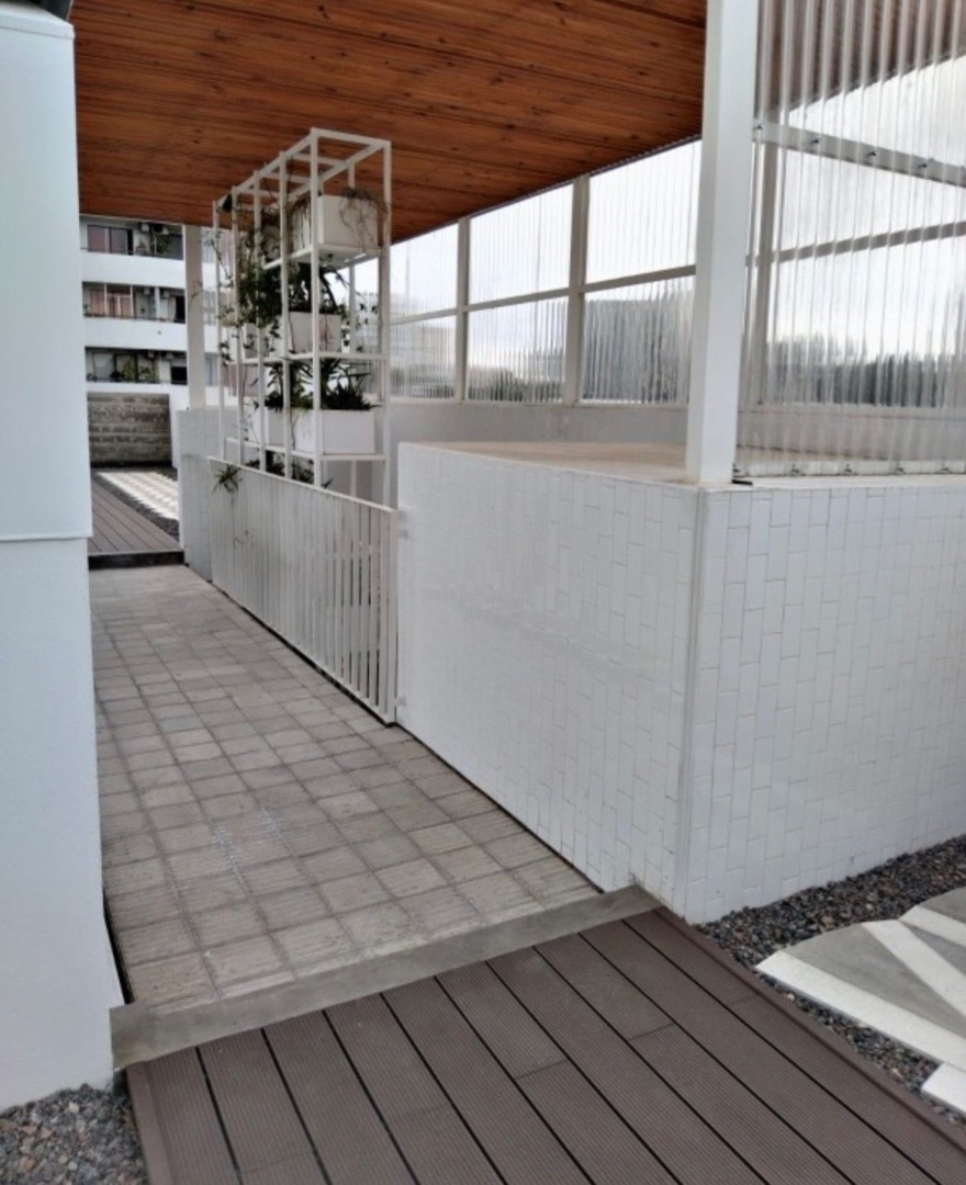Patio interno de uso exclusivo, cuenta con balcón con sillón.