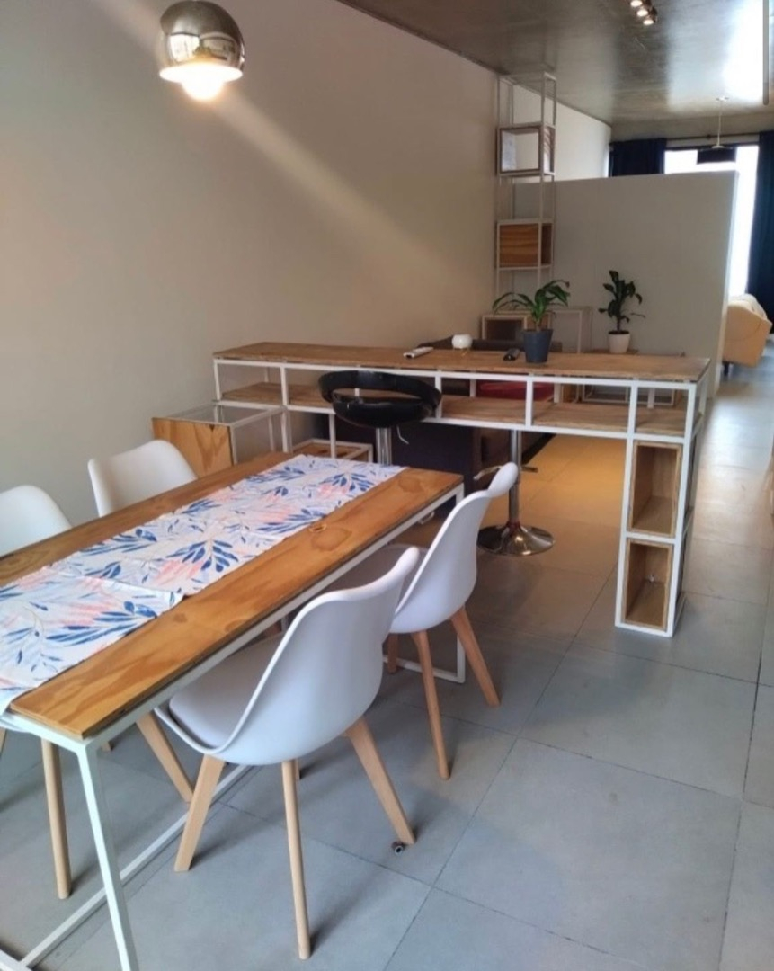 El departamento cuenta con living amplio con mesa de estilo nórdico, barra desayunadora, sillón de dos cuerpos, mesa ratona, televisión, cuenta con salida directa al balcón.