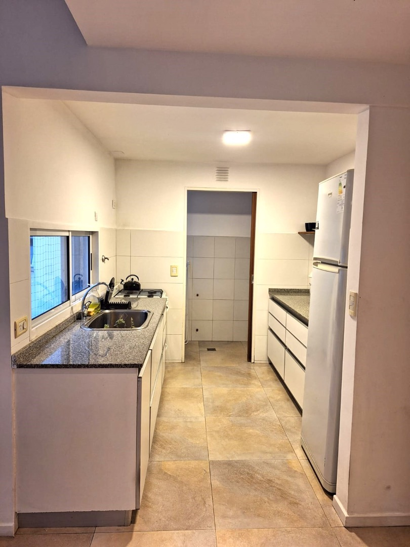 El departamento cuenta con: Cocina equipada con alacena, Heladera, Living con mesa y sillas, sillones con mesa ratona, con Tv. y el baño.