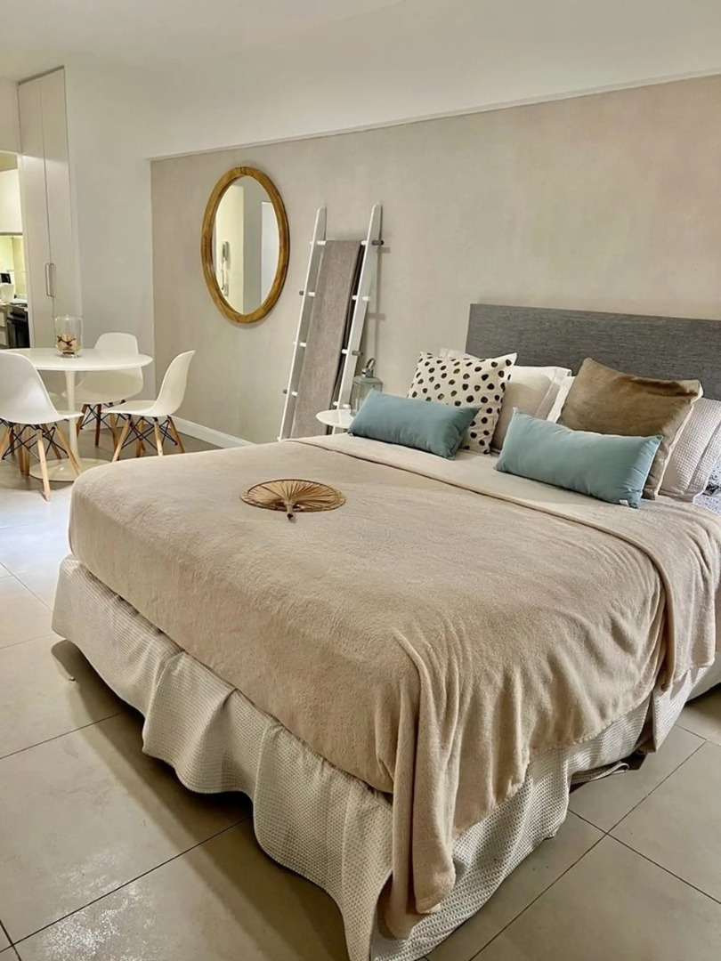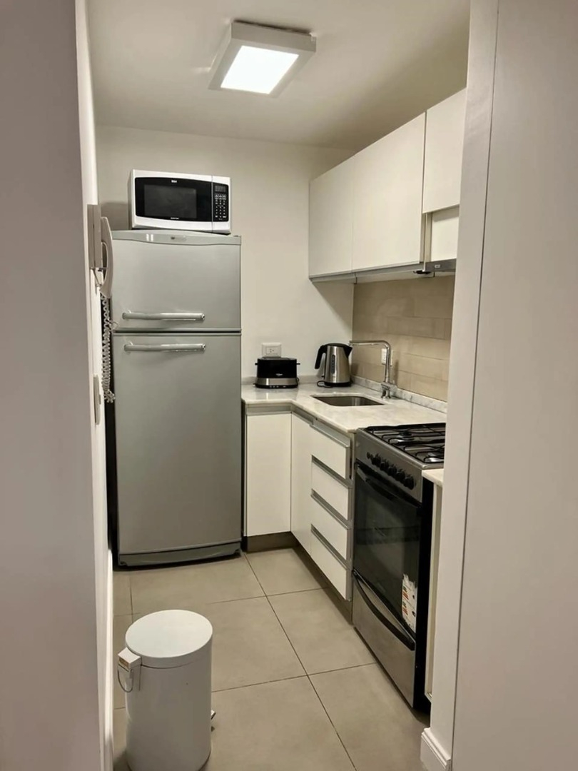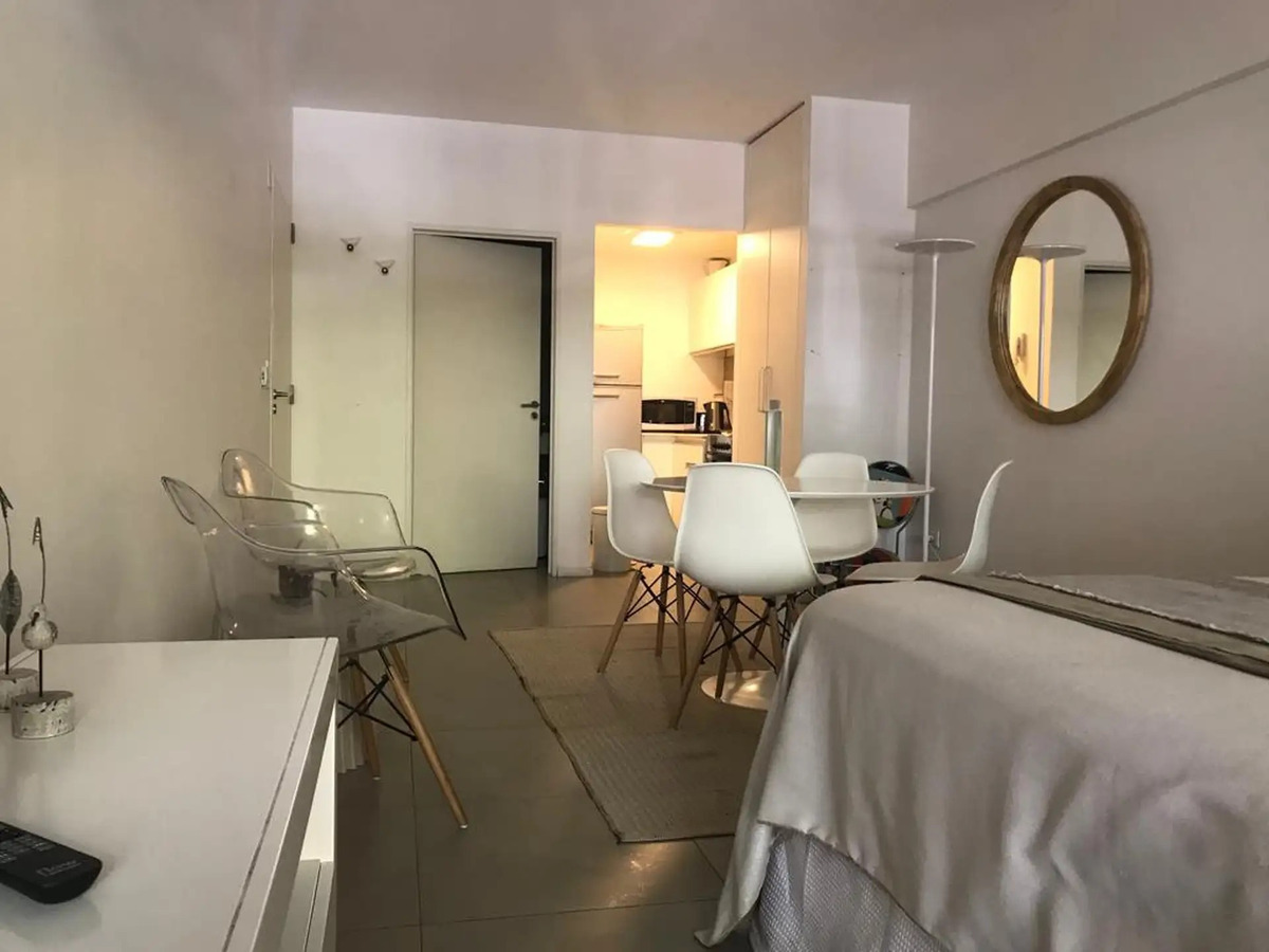 El departamento es ideal para 1 o 2 huéspedes. Tiene balcón al frente con Cortinas Screnn 5 % y Black Out. Equipado con Sommier dos Plazas, Mesa Tulip, 4 Sillas Eames, aparador, Luz de Pie, Tv Plana de Led. Interior de Placard Completo. Cocina con alacenas / Extractor, Heladera, Microondas, Pava Eléctrica, Tostadora, Plancha, Vajilla Completa y baño completo con Mampara de Vidrio / Espejo. Luces Instaladas en Todos Los Ambientes. Aire Acondicionado Frio / Calor.