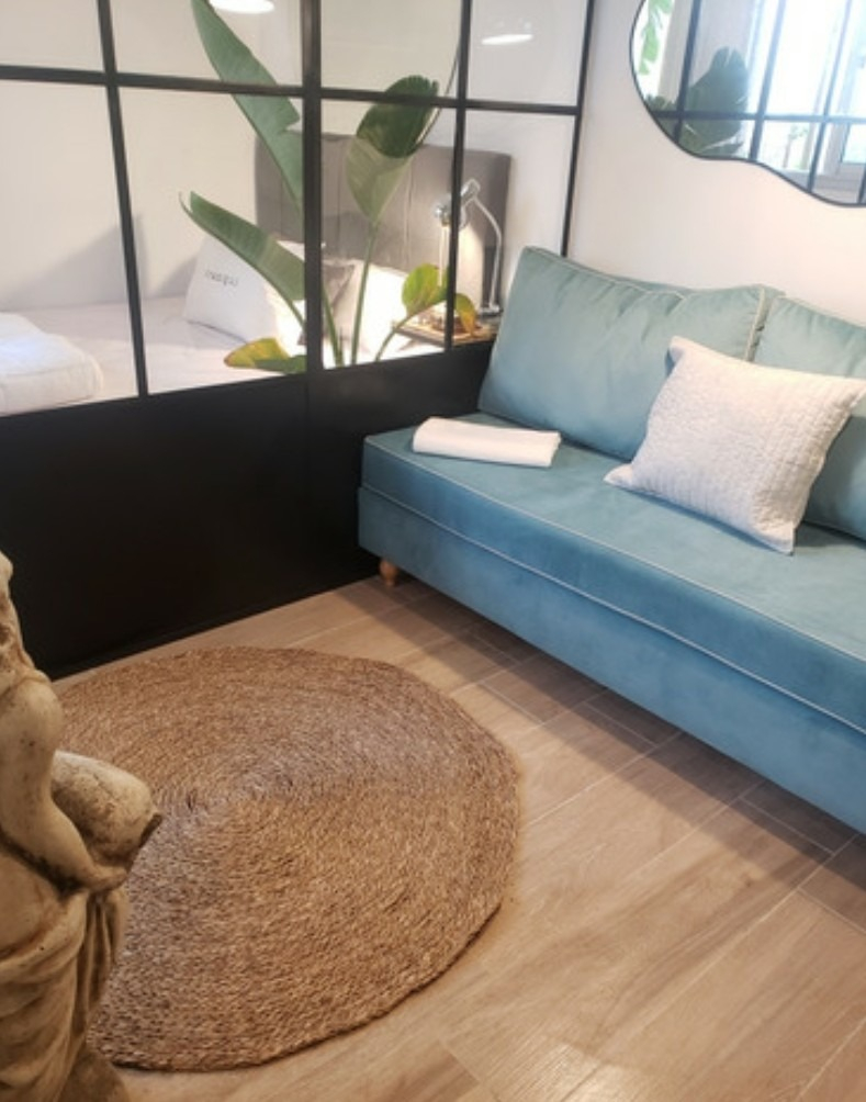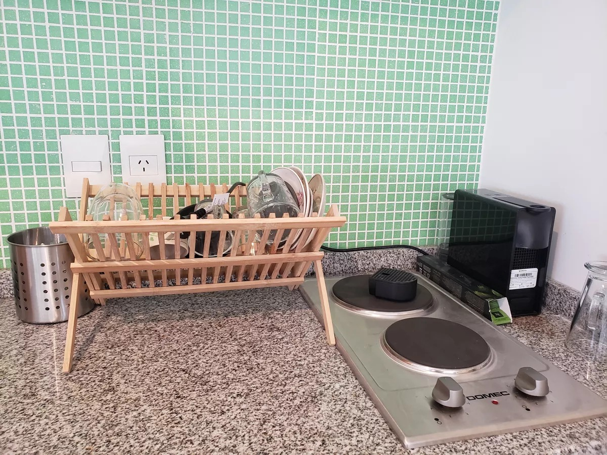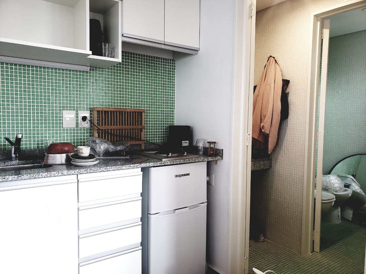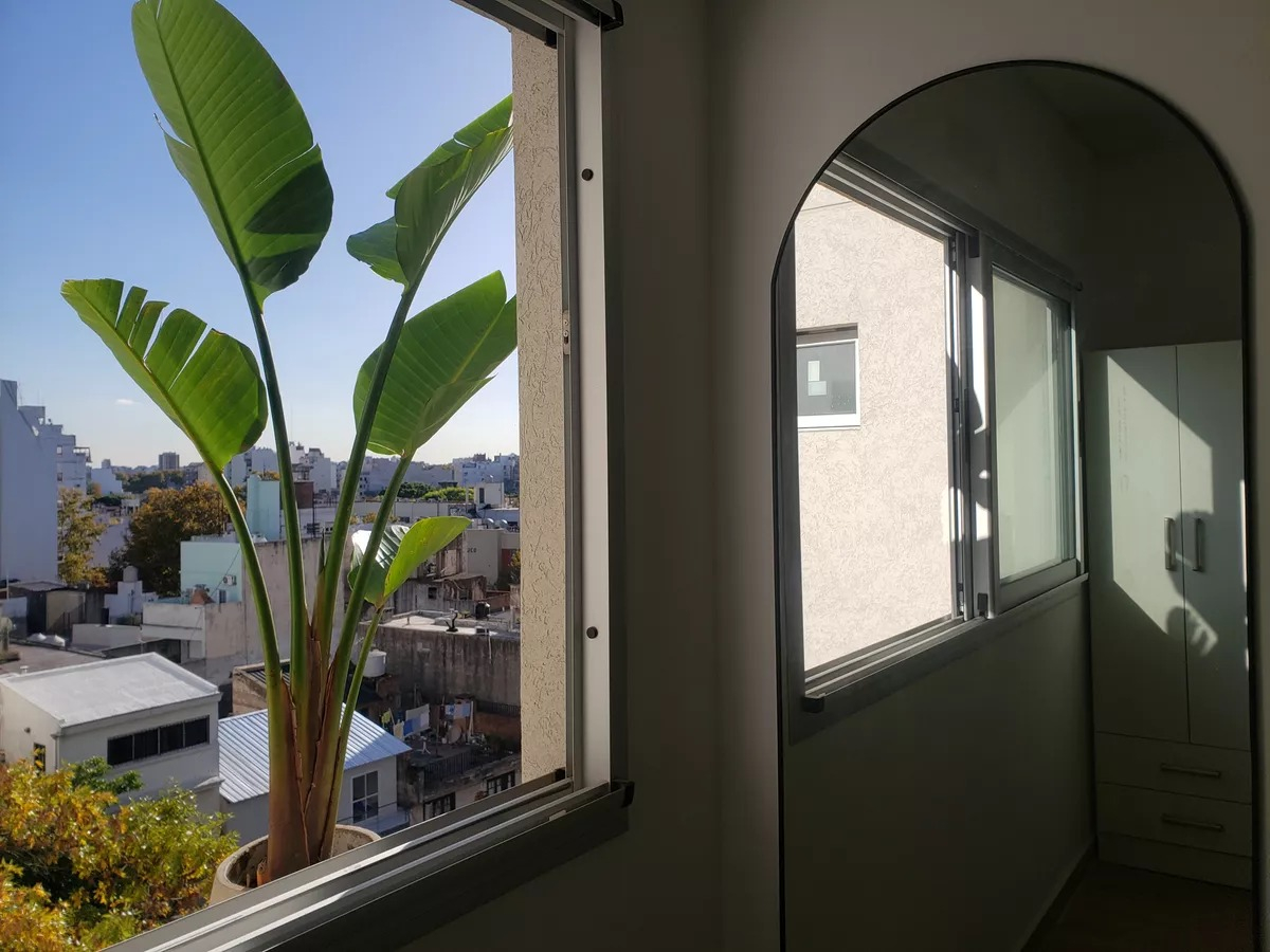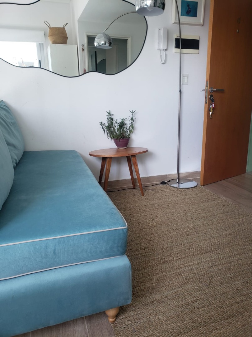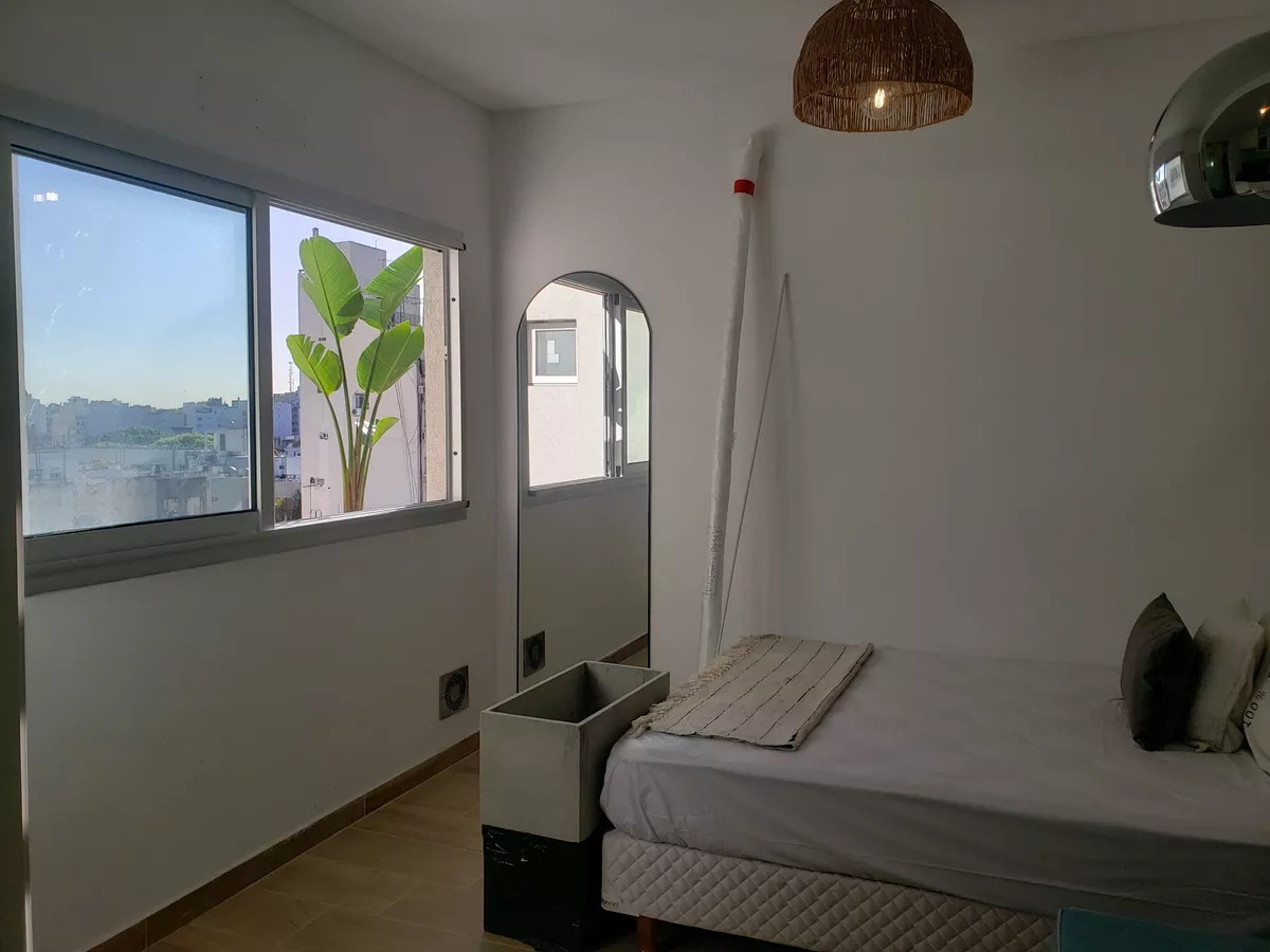 El monoambiente es silencioso y muy luminoso, con un ventanal hacia el lateral. Tiene Smart Tv y sofá de diseño de pana de 1,80. La cocina está amoblada con alacena y bajo mesada y totalmente equipada con anafe eléctrico, horno eléctrico, cafetera Nespresso, electrodomésticos, heladera bajomesada con freezer, utensilios de cocina y vajilla. Cuenta con ventanas amplias, cama matrimonial, placard y aire acondicionado. El baño es completo con ducha.