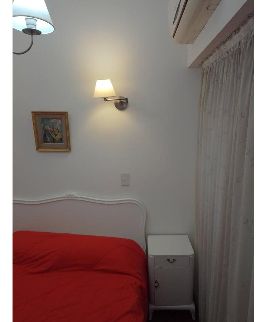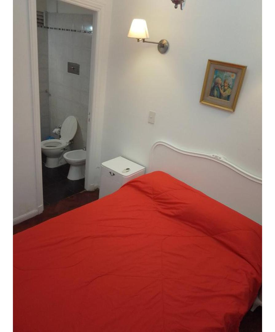 El dormitorio cuenta con una cama matrimonial y sus mesas de luz, el baño está totalmente equipado con bañera y demás instalaciones sanitarias nuevas.