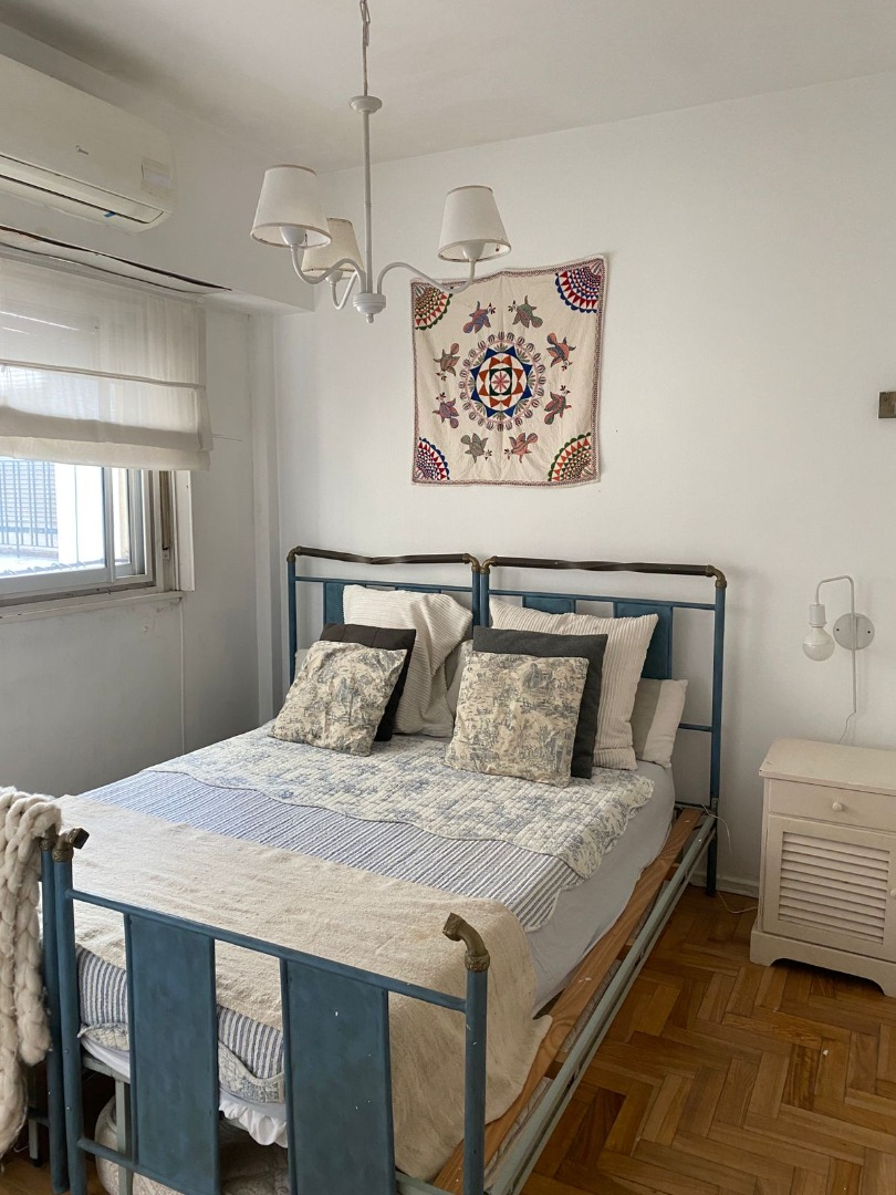 El departamento es amplio y luminoso, tiene ventanas en todos los ambientes. La cocina es independiente, está completamente equipada con heladera, cocina a gas, electrodomésticos, utensilios de cocina y vajilla. El área del living comedor cuenta con sofá cama, mesa de comedor con sillas, espacio de guardado. El dormitorio cuenta con dos camas individuales que pueden unirse logrando una cama matrimonial, mesa de luz, placard, y aire acondicionado. El baño es completo con bañera.