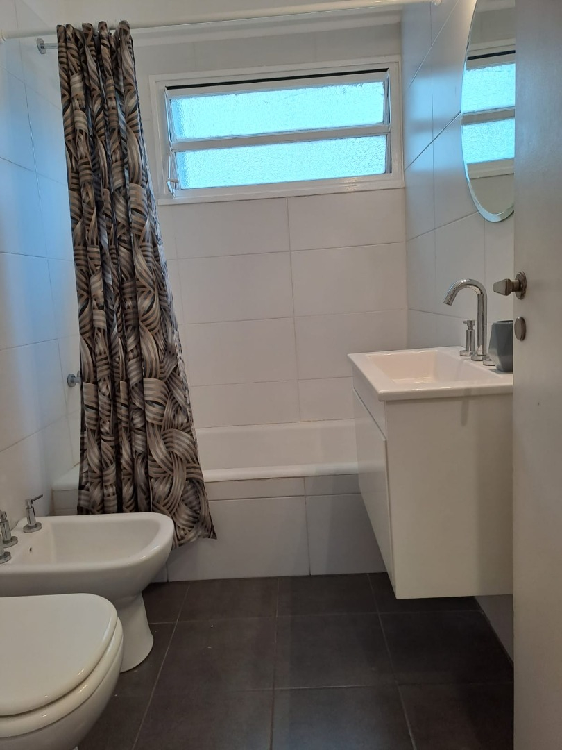 El departamento es interno y al no tener edificio lindero es muy luminoso. Fue remodelado hace 3 años y tiene la cocina y el baño a nuevo. Consiste en Living comedor, cocina separada equipada con Heladera, lavarropas, microondas, cafetera, pava eléctrica, 2 dormitorios con placard y baño completo. 2 AA frio calor, ventilador de techo en habitación principal y caloventor adicional.