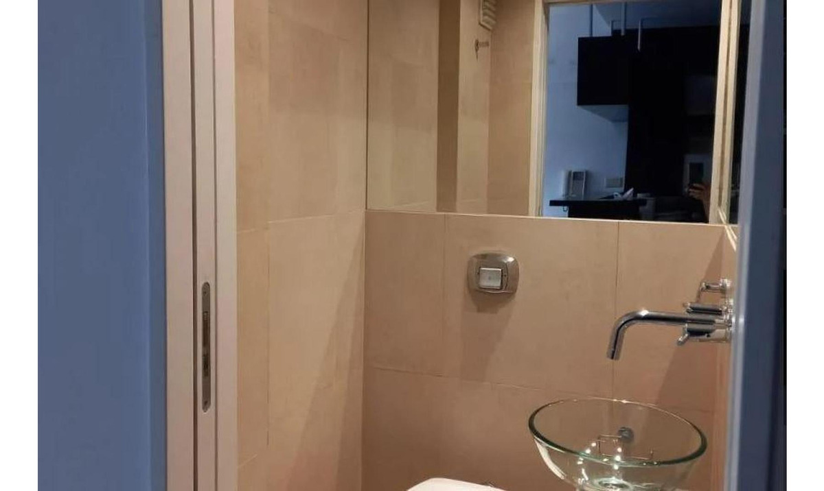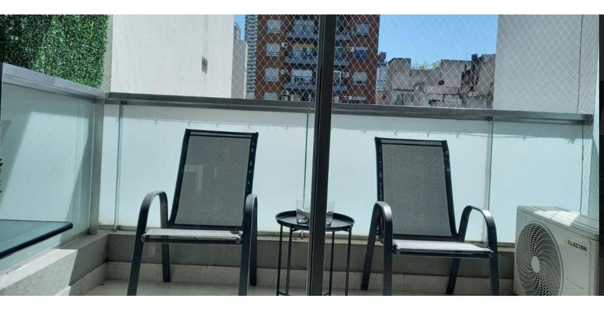 Descripción: monoambiente dividido ( gana 1 dormitorio), espacioso con excelente iluminación, cocina integrada, baño completo, toilette y un cómodo balcón con vista al contra frente, equipado con dos sillas y una mesa ratona.