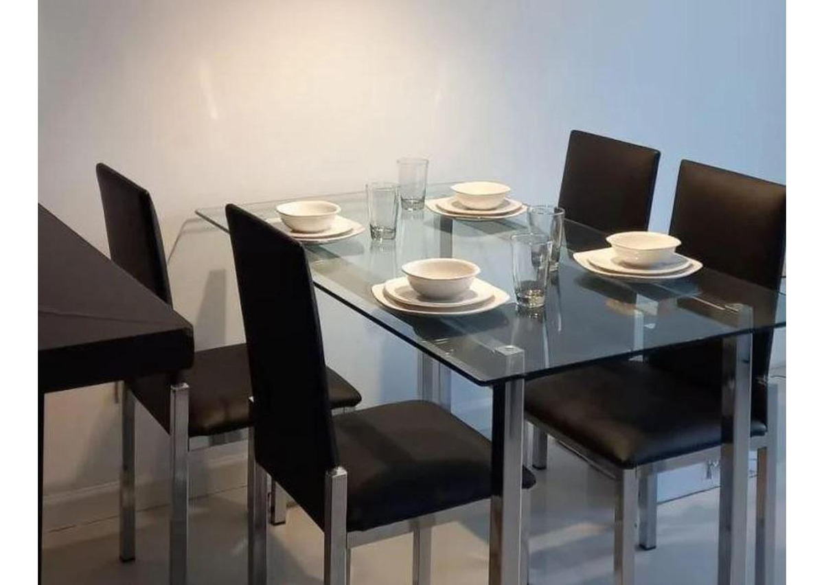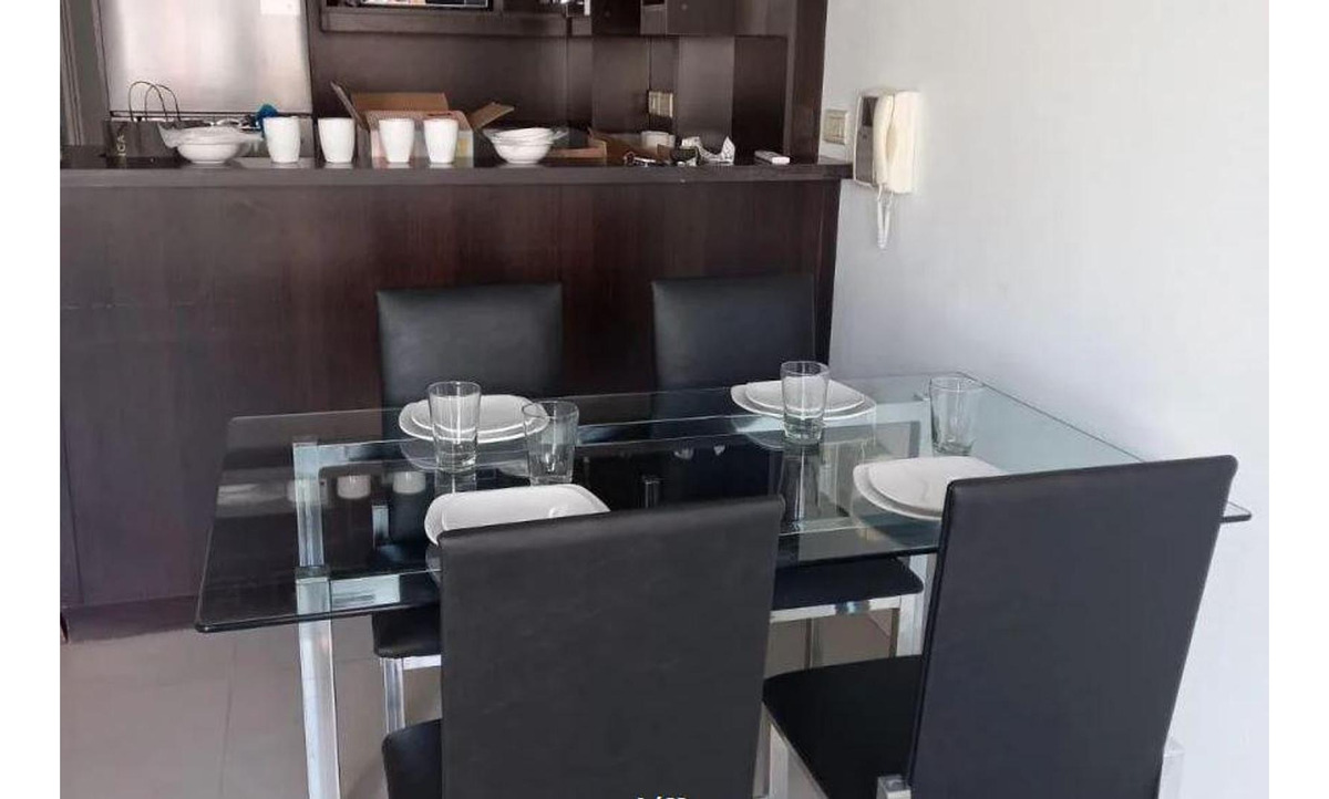 Cuenta con un Living comedor con mesa de cuatro sillas, sillón, Smart TV 43 , muebles modulares, aire acondicionado frio/ calor, agradable ambiente. El área de la Cocina ofrece heladera con freezer, microondas, jarra eléctrica, vajilla, cocina y horno eléctrico.