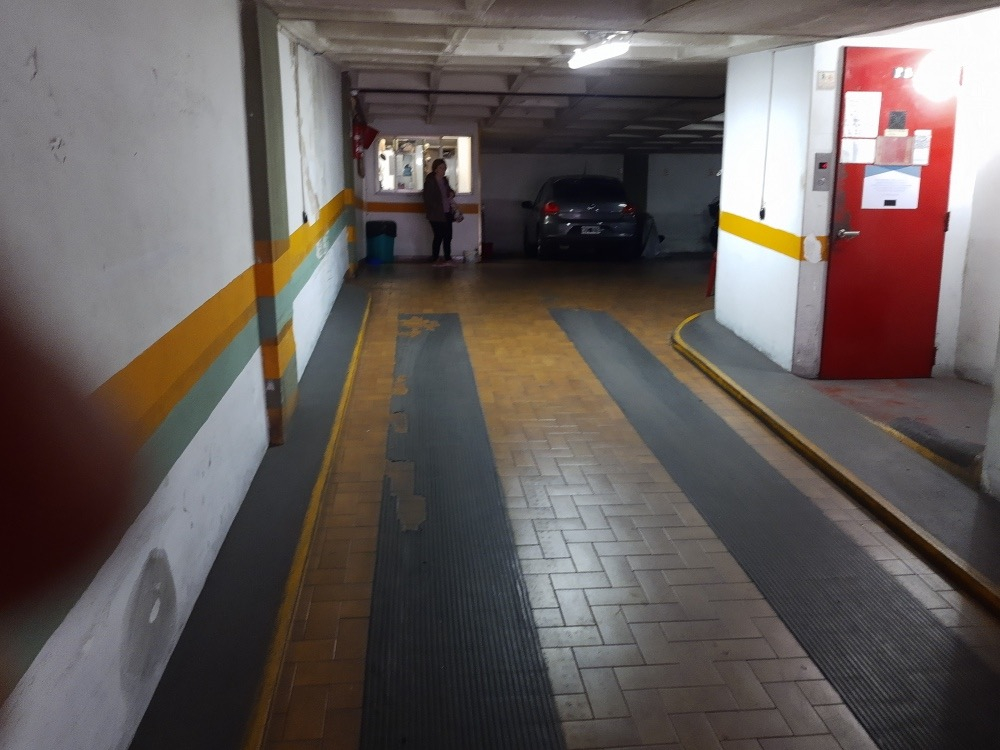 La cochera es cubierta fija, tiene 12,35 metros, se accede por rampa, cuenta con portón, matafuegos.
