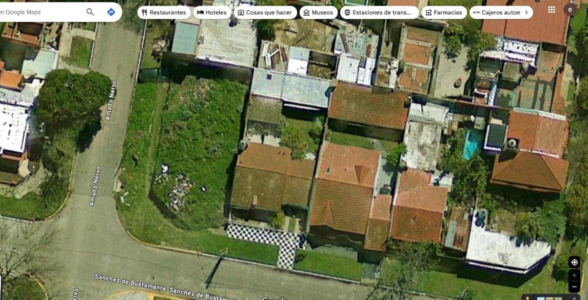 Linda su frente sudoeste con la calle Bustamante y su frente noroeste forma esquina con la calle Amado.