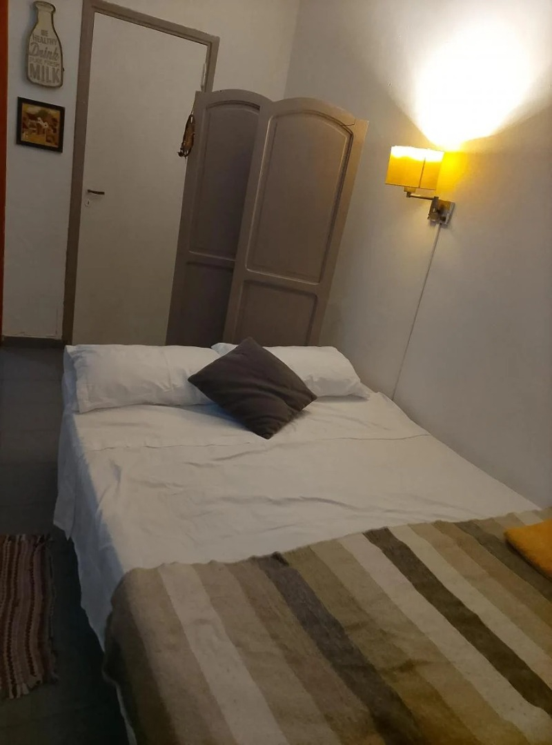 En el departamento tiene buena iluminación, amplio y amueblado. Cuenta con una cama individual de una plaza, y una placard hermoso de madera totalmente empotrado.