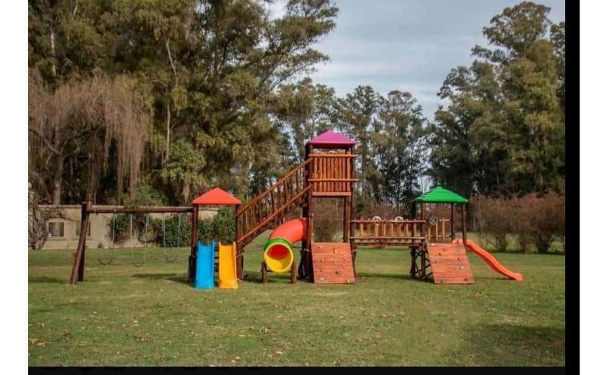 De igual modCuenta con lagunas naturales, bosque de eucaliptos, Club House, amplios espacios comunes, pileta, vestuarios completos con duchas y espacios de guardado, plaza de juegos, salón de estar, salón de usos múltiples. Seguridad 24 hs.Triple cerco perimetral electrificado que rodean los 6,5 km de predio. Alumbrado de espacios comunes, calles asfaltadas y tendido subterráneo de electricidad y servicios.