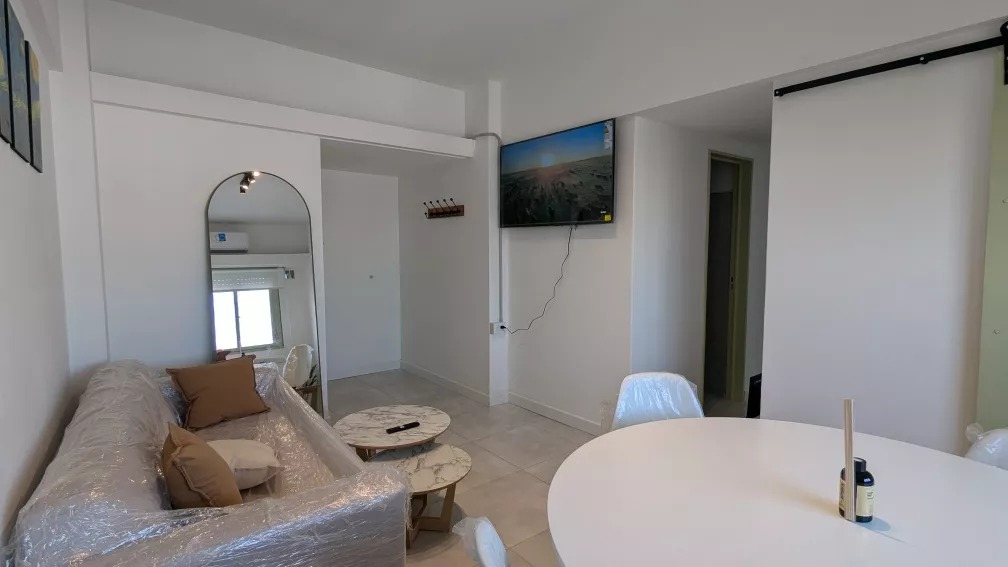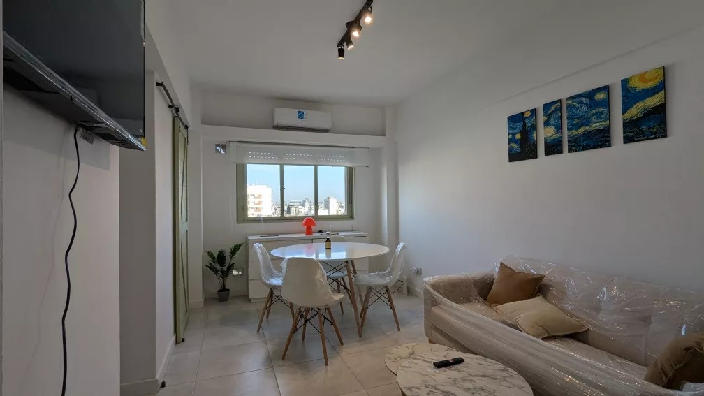 El departamento se encuentra en piso alto, recibe mucha luz natural y tiene vista abierta. La cocina está completamente equipada, cuenta con cocina a gas, heladera con freezer, electrodomésticos, utensilios de cocina y vajilla. El living comedor cuenta con mesa de comedor con sillas, sillón, mesas de apoyo, aire acondicionado fríocalor y Smart TV. El dormitorio principal cuenta con sommier queen, mesas de luz, placard empotrado, y otro aire acondicionado fríocalor. El segundo dormitorio cuenta con sommier de una plaza, mesa de luz y placard. Baño completo con ducha. Cuenta con lavadora.