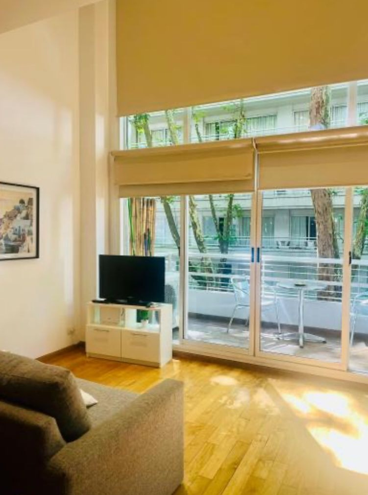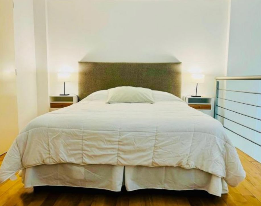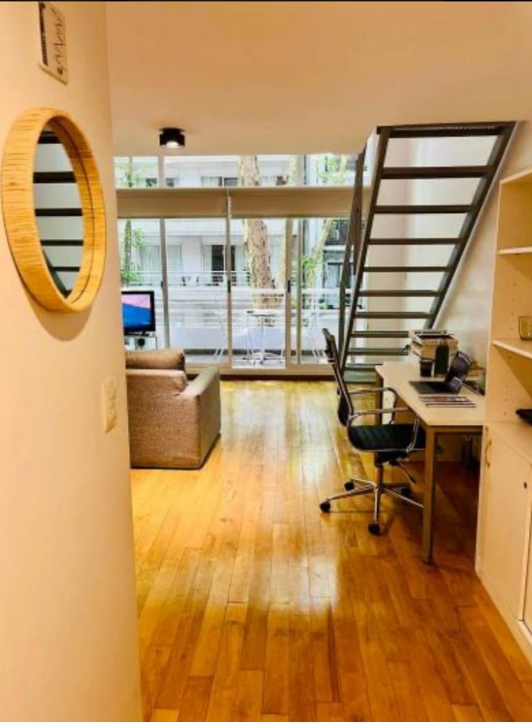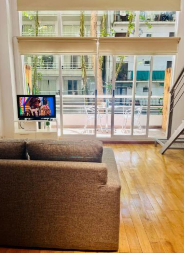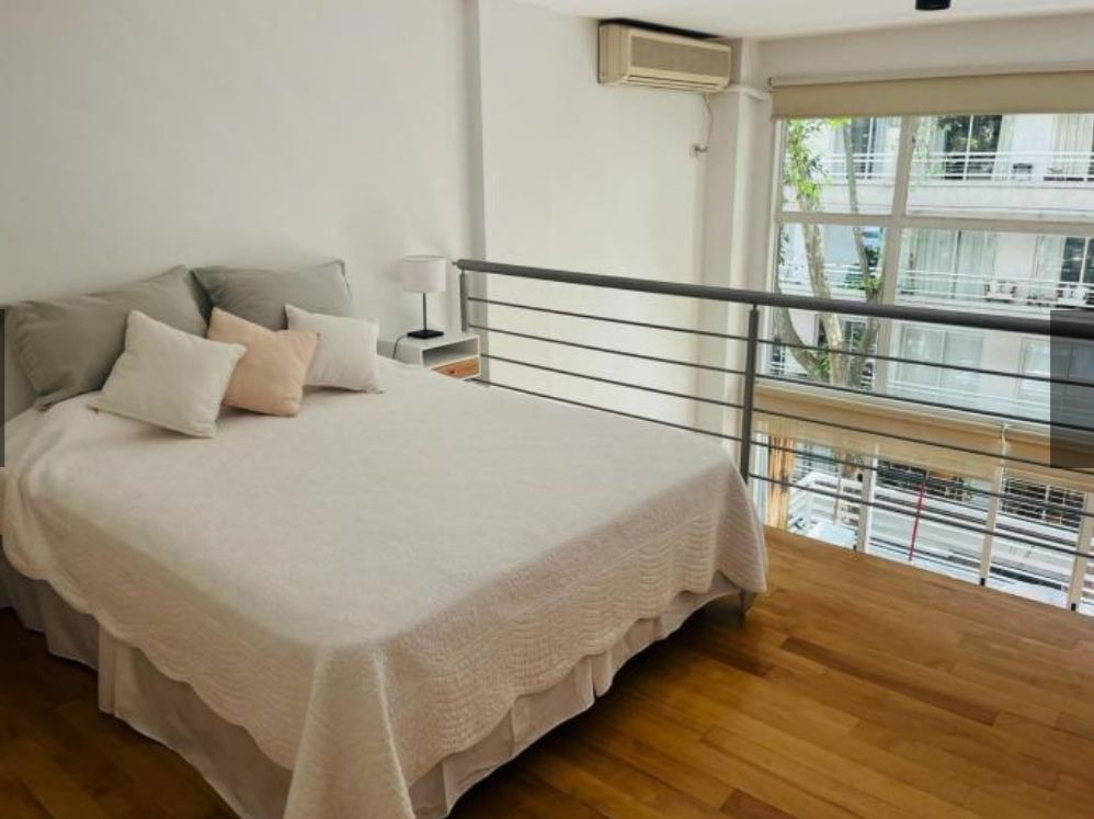 El departamento de edificacion duplex recibe mucha luz natural. La cocina se encuentra totalmente equipada, contiene cocina electrica, heladera con frezzer, y utensillos de cocina. El living comedor cuenta mesa de comedor con sillas, sillón, mesas de apoyo, aire acondicionado fríocalor, Smart TV, escritorio junto con silla movil y ventanal con salida al balcon. El dormitorio principal se encuentra en la parte superior cuenta con sommier de 2 plazas, mesa de luz, placard y Smart TV. baño completo con ducha.