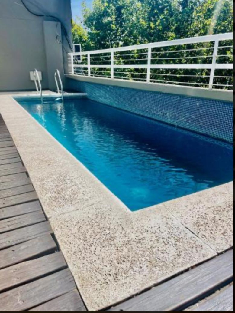 El edificio cuenta con terraza donde esta el acceso a la pileta y sauna.