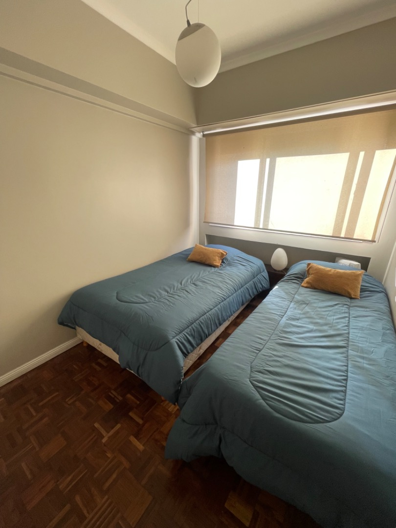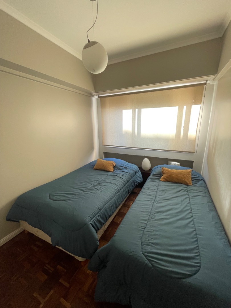 Dormitorio principal con cama matrimonial, segundo dormitorio con dos camas de una plaza y media, con placard.