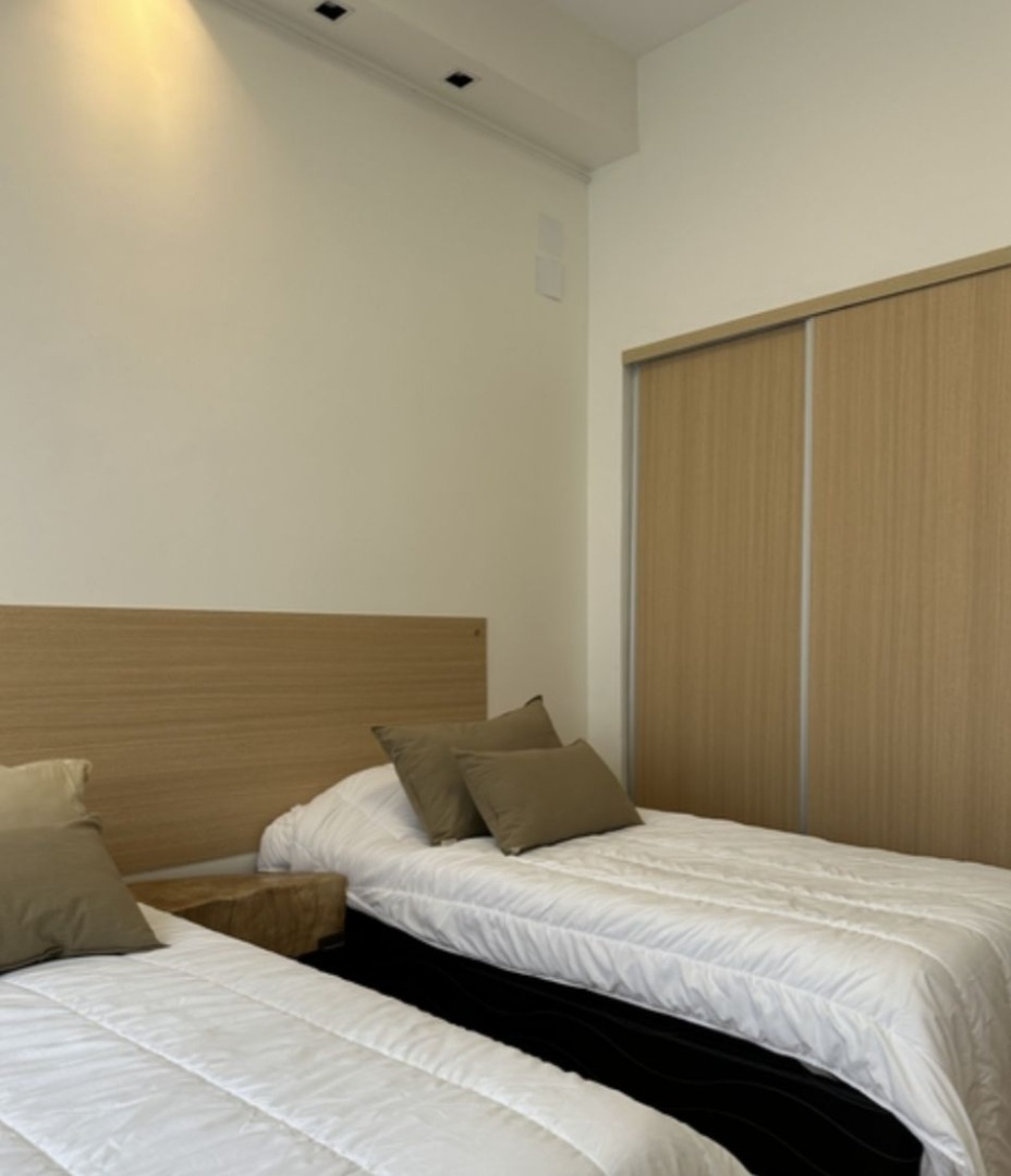 -El segundo dormitorio contiene 2 camas de una plaza, mesa de luz y placard empotrado.
