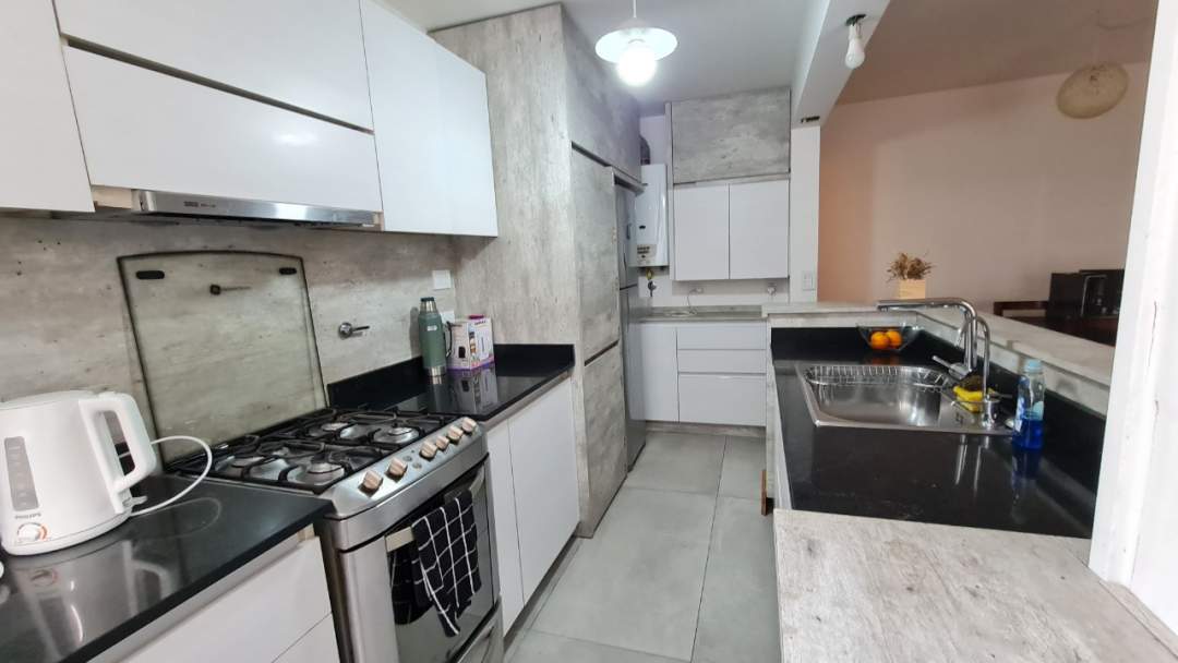 El departamento cuenta con dos dormitorios, uno con cama matrimonial y otro con una cama individual. Living-comedor, cocina semi separada completamente equipada y un baño completo.