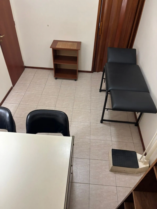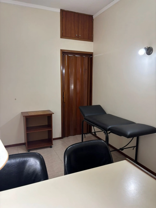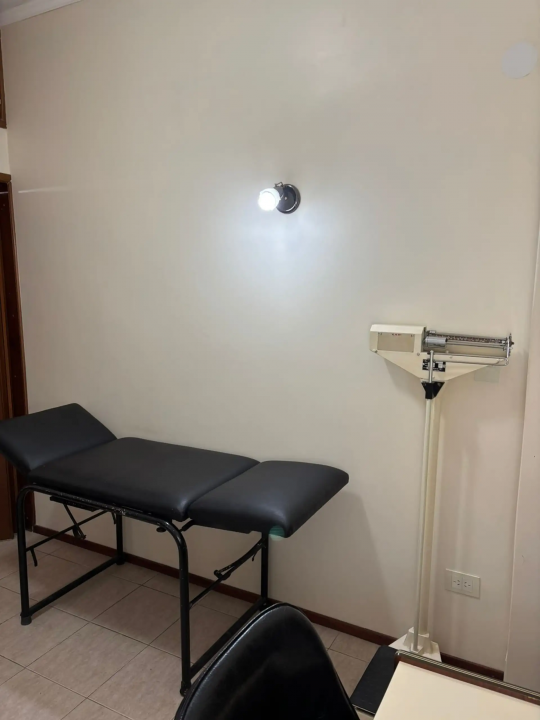 Consultorio completamente equipado con escritorio, camilla, biblioteca, mesita auxiliar y balanza.